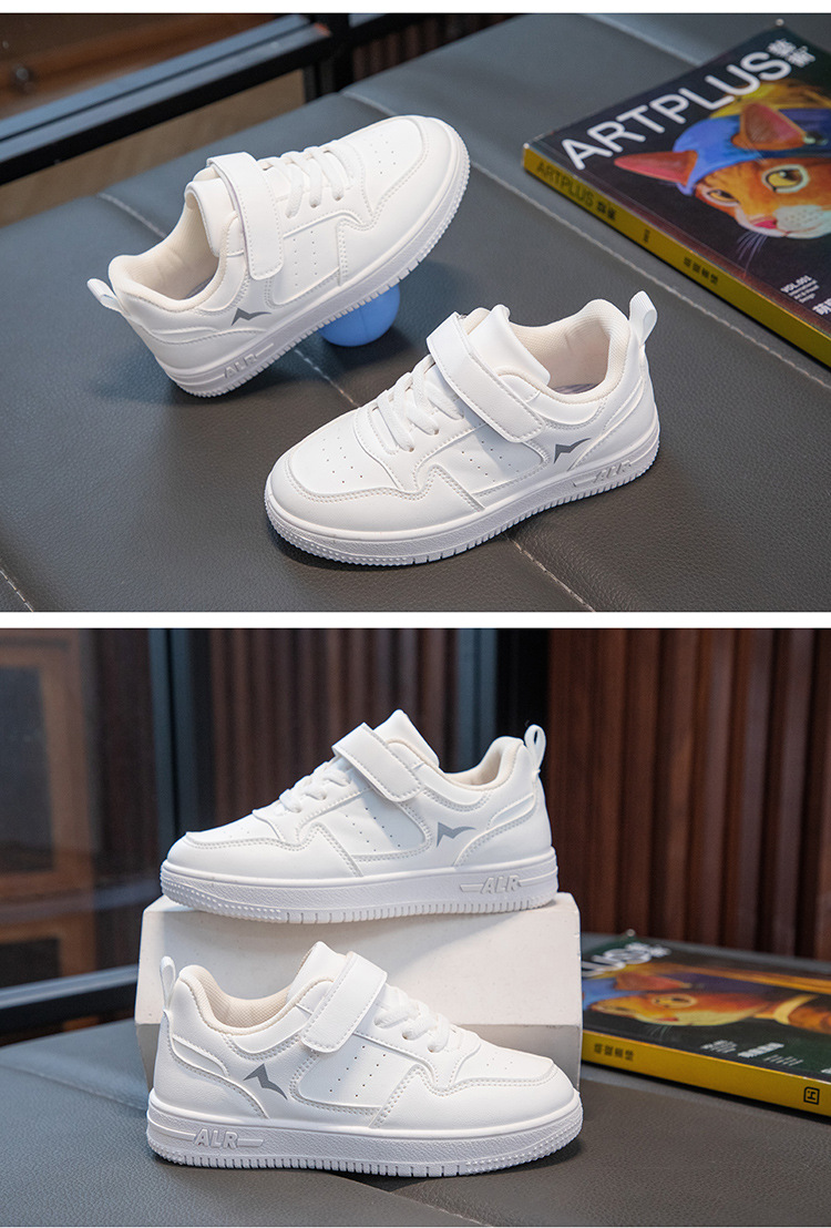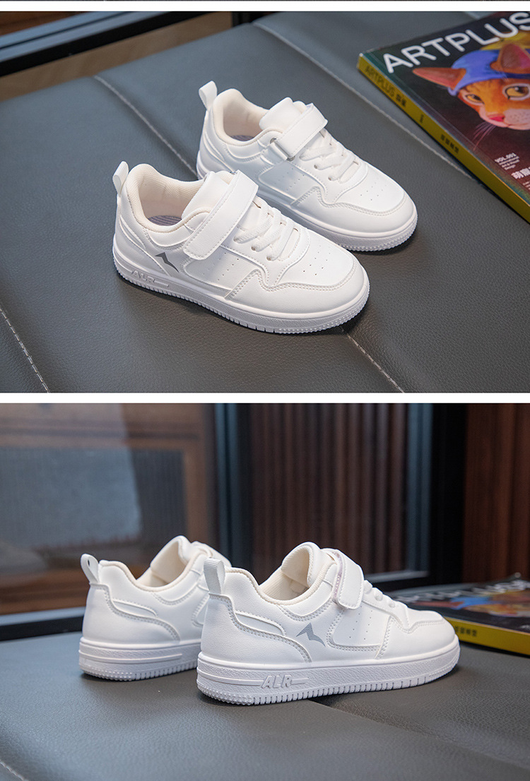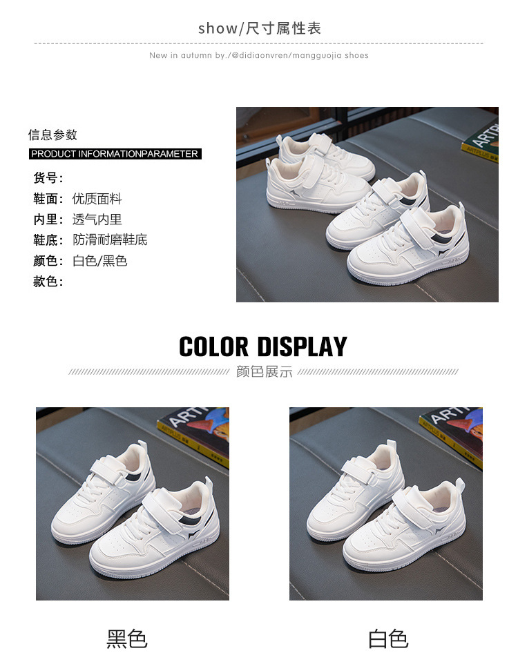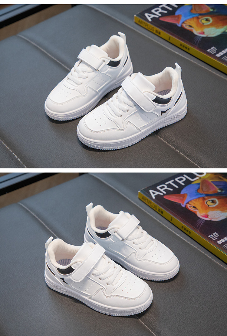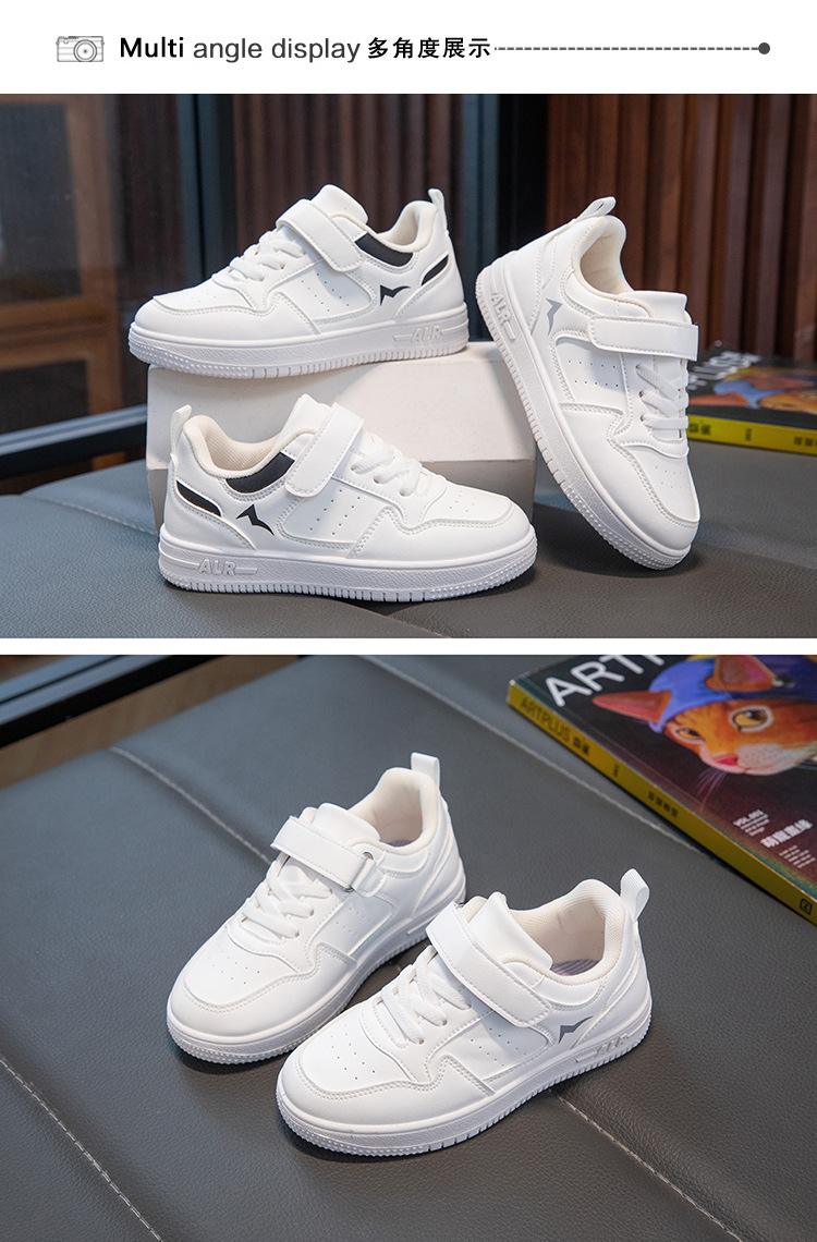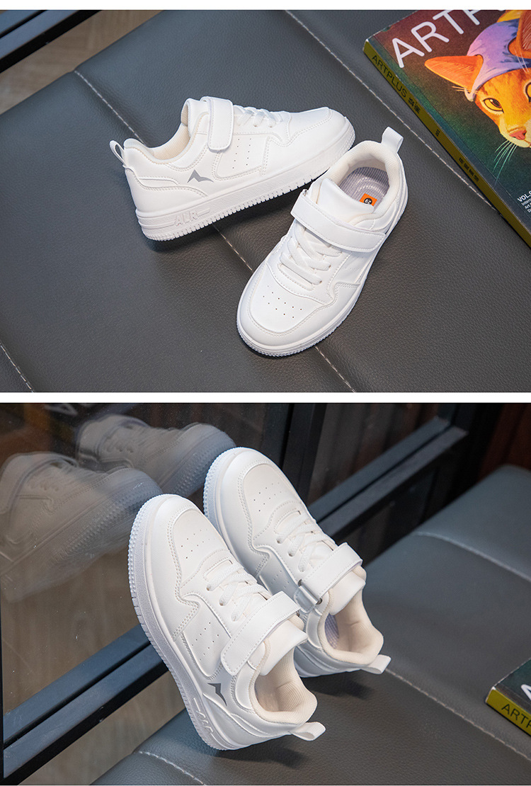 어린이와 학생 캐주얼 흰색 신발 새로운 포 시즌 소년 소녀 가죽 메쉬 학교 공연 흰색 신발 부드러운 솔스토어 가기