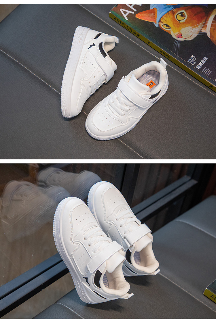 어린이와 학생 캐주얼 흰색 신발 새로운 포 시즌 소년 소녀 가죽 메쉬 학교 공연 흰색 신발 부드러운 솔