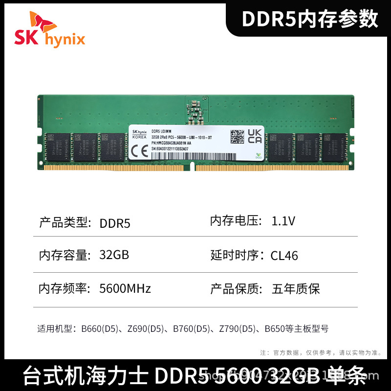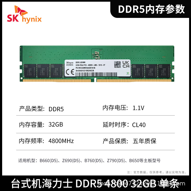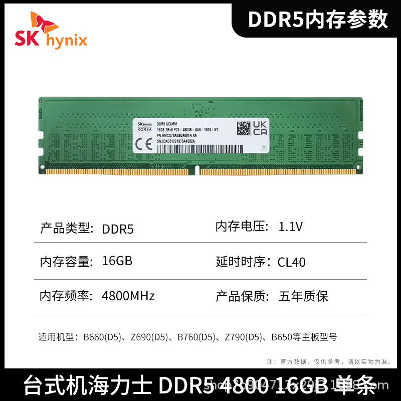 데스크탑 메모리 칩 하이닉스 DDR5 8G 16G 32G 4800 5600 5 세대 메모리 게임 사무실스토어 가기