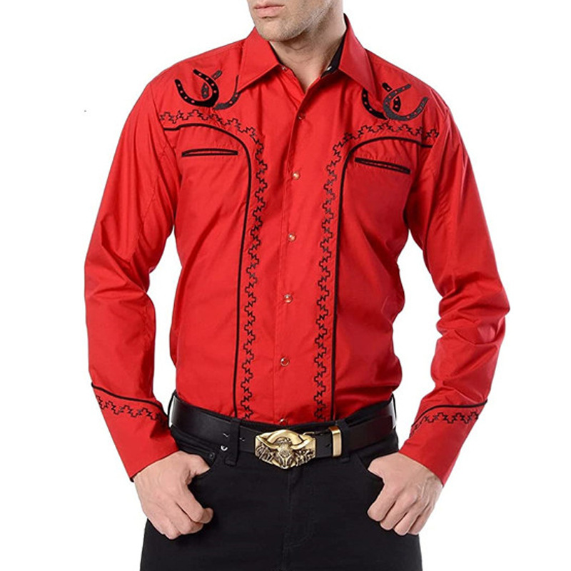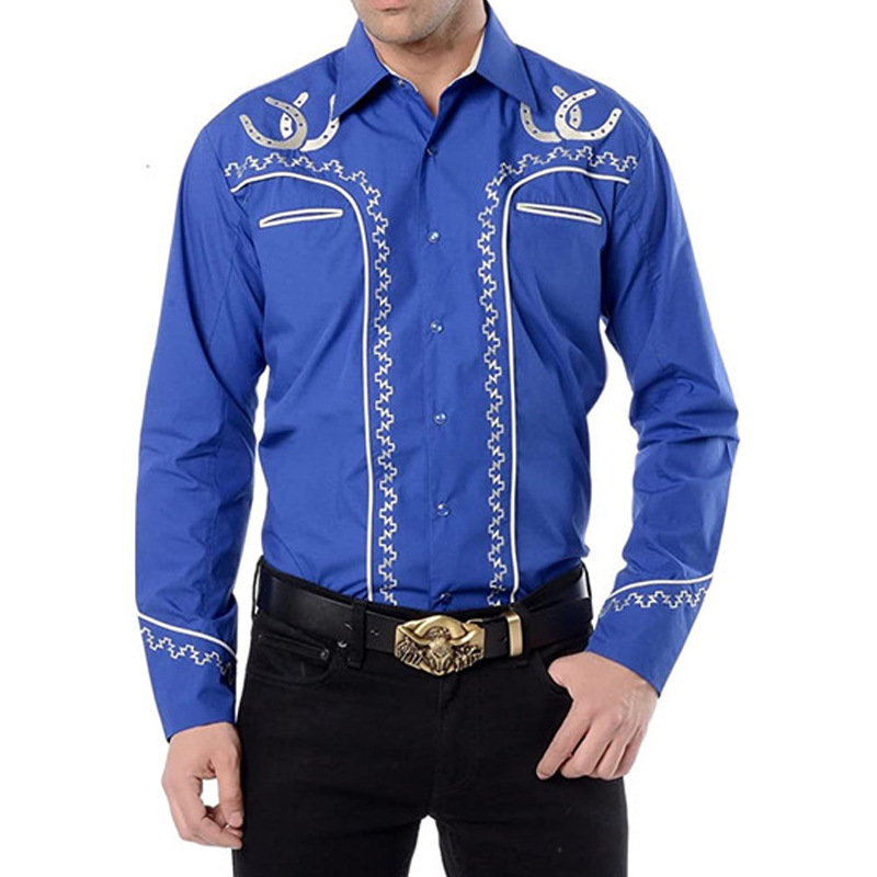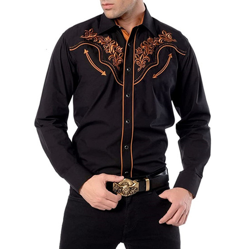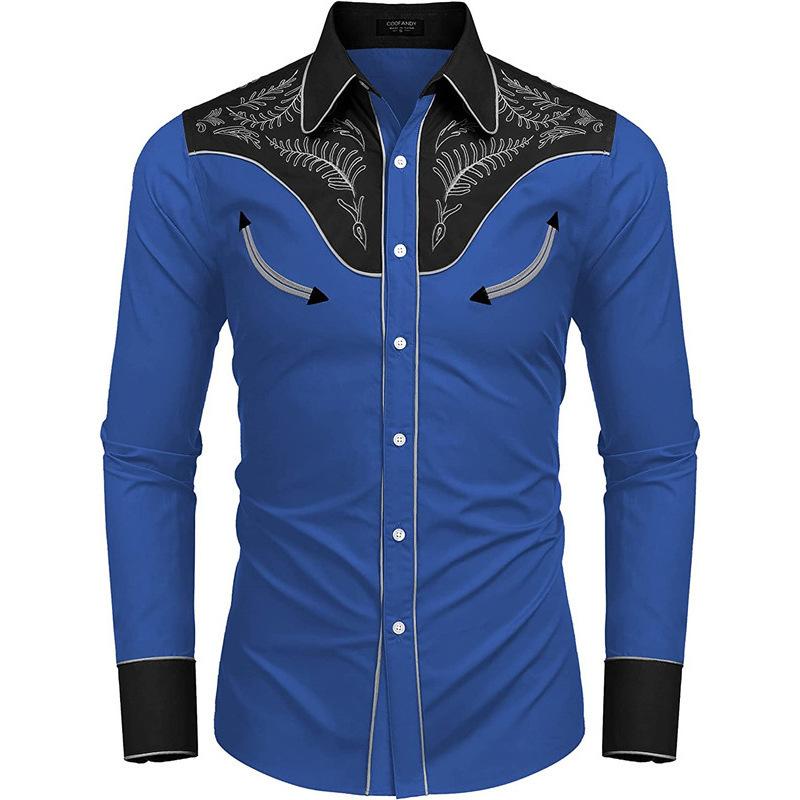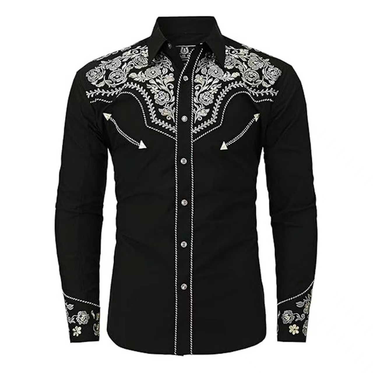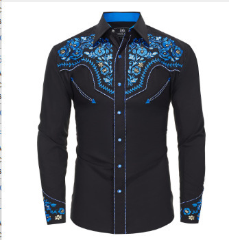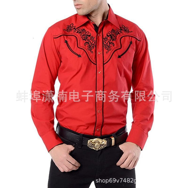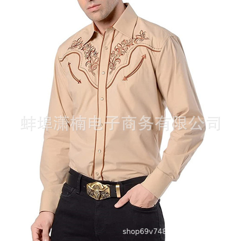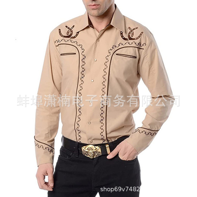 2023 크로스보더 신상 남성 패션 자수 셔츠 미국 서부 스타일 패턴 루즈한 긴팔 셔츠