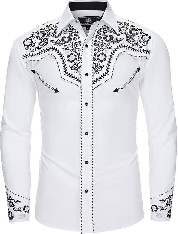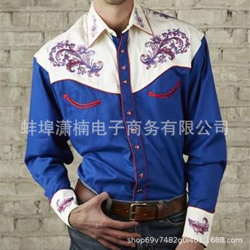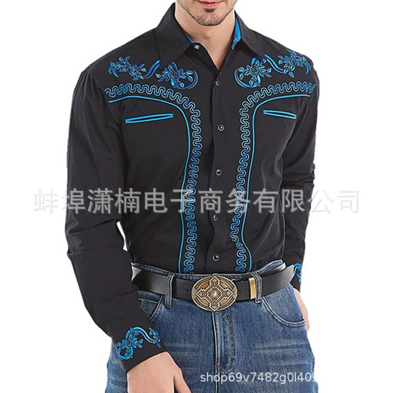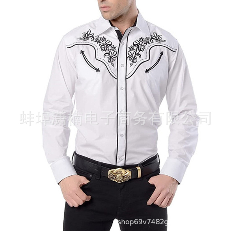 2023 크로스보더 신상 남성 패션 자수 셔츠 미국 서부 스타일 패턴 루즈한 긴팔 셔츠스토어 가기