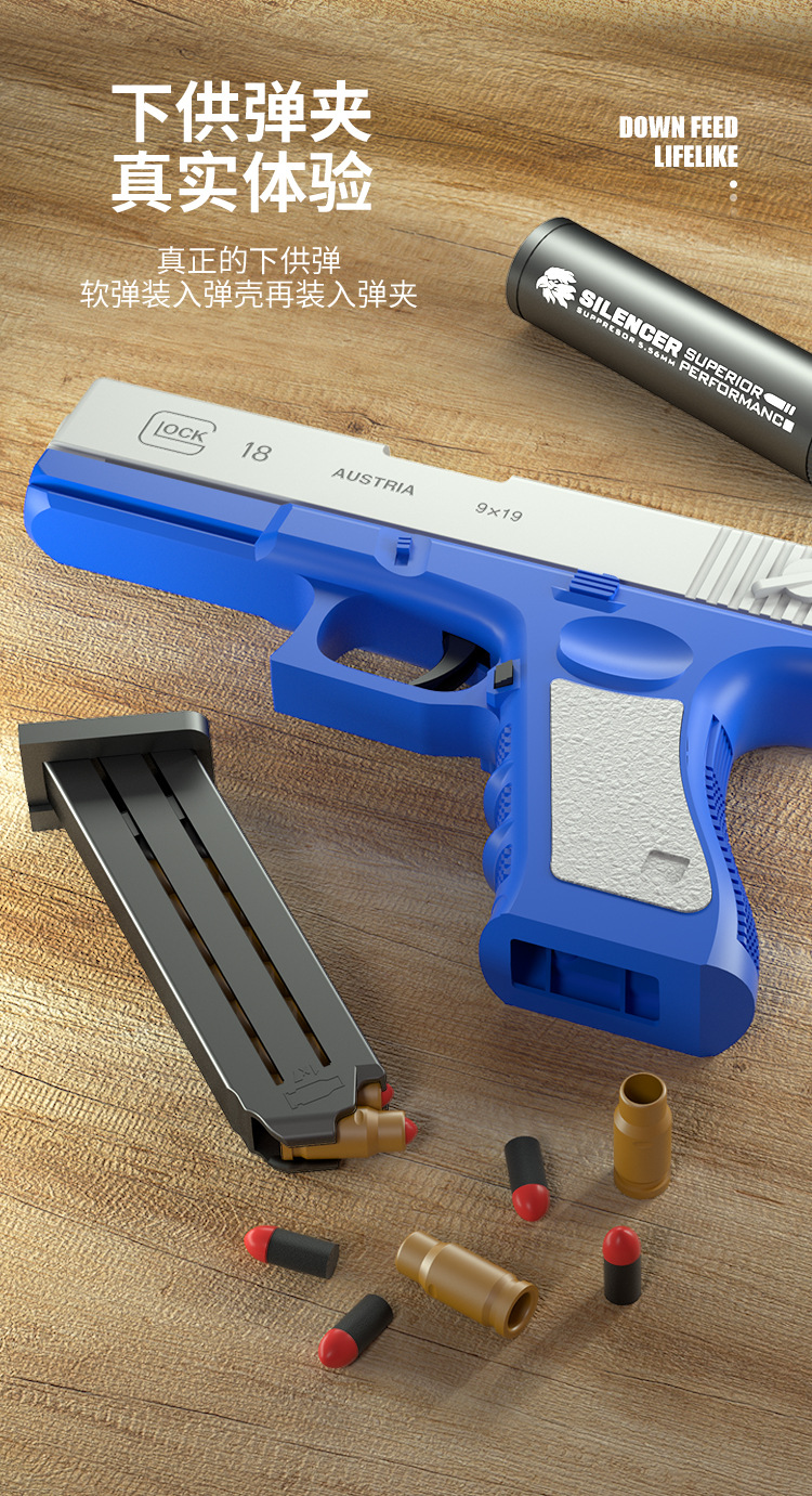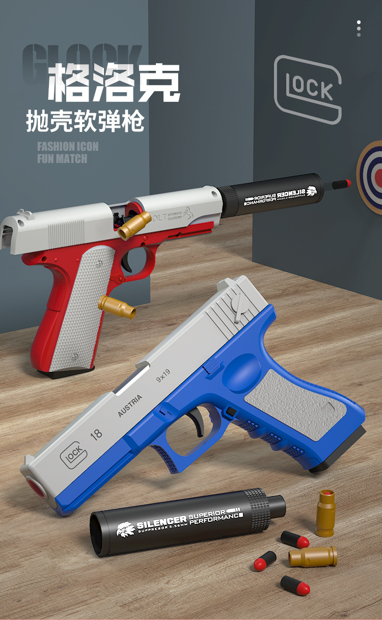 글록 탄피 배출 소프트 총알총 도매 어린이 장난감 총알 발사 시뮬레이션 총 소년용 권총 모델 장난감스토어 가기