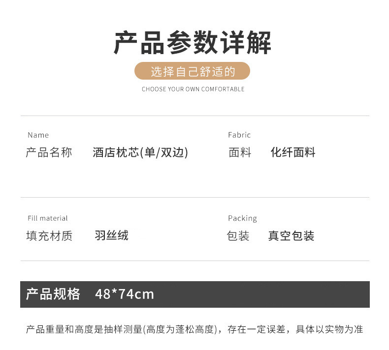 • 48*74cm (높은 베개 750g)