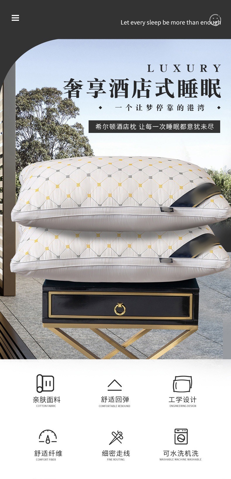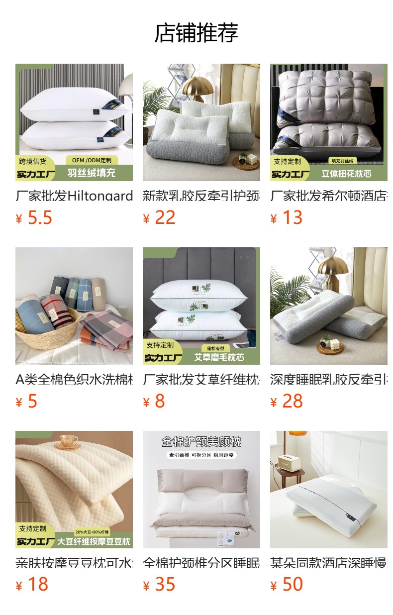 공장 도매 힐토마간덴 가든 호텔 단면 고급 고탄성 베개 가정용 목 보호 베개 코어 선물스토어 가기