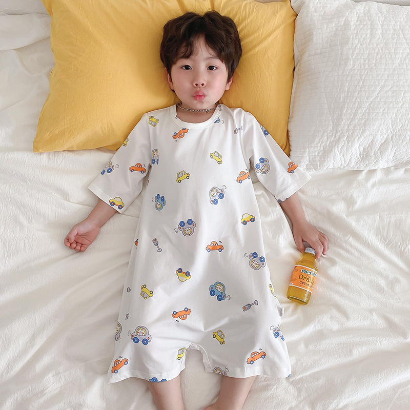 새로운 봄, 여름 아기 중간 소매 뼈없는 침낭 어린이 얇은 라이크라 코튼 이음매없는 홈웨어 드롭 배송스토어 가기
