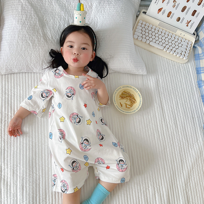 새로운 봄, 여름 아기 중간 소매 뼈없는 침낭 어린이 얇은 라이크라 코튼 이음매없는 홈웨어 드롭 배송