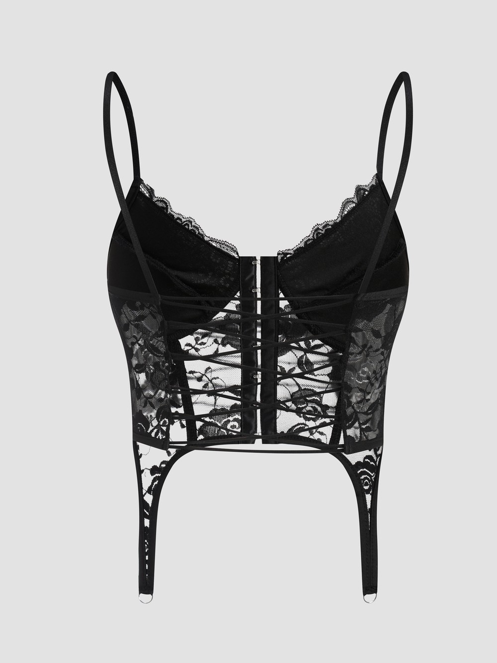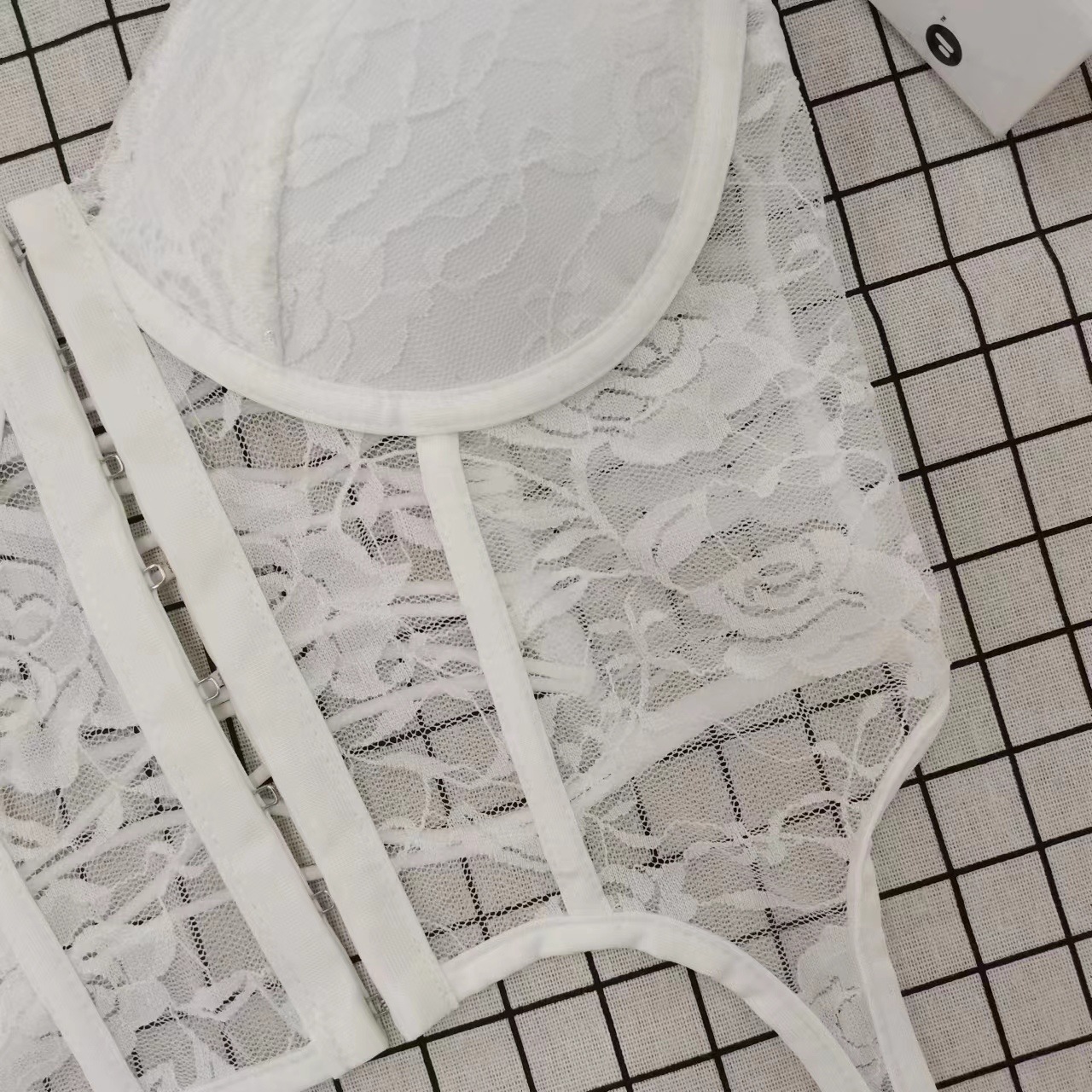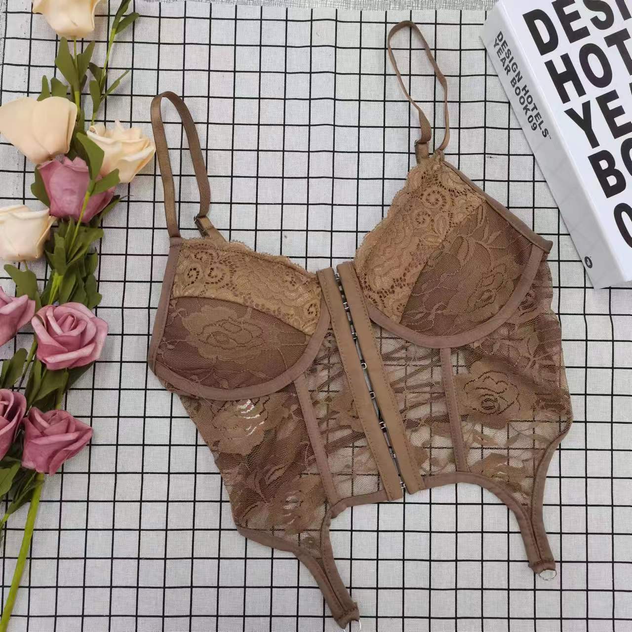 Ins 유럽과 미국의 등이없는 크로스 스트랩 레이스 슬링 여성 불규칙한 가슴 노출 섹시한 소녀 조끼 탑 (가슴 패드 포함)