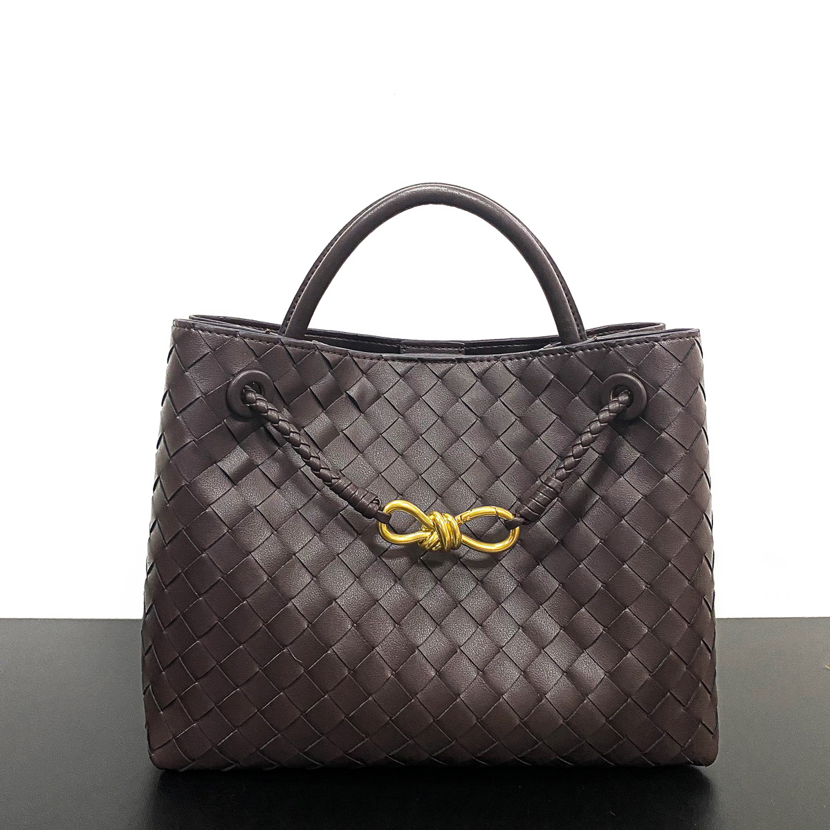 틈새 디자인 봄 새로운 금속 로프 버클 짠 토트 백 싱글 숄더 휴대용 대용량 레트로 여성 가방