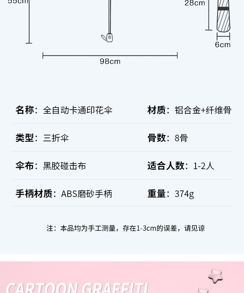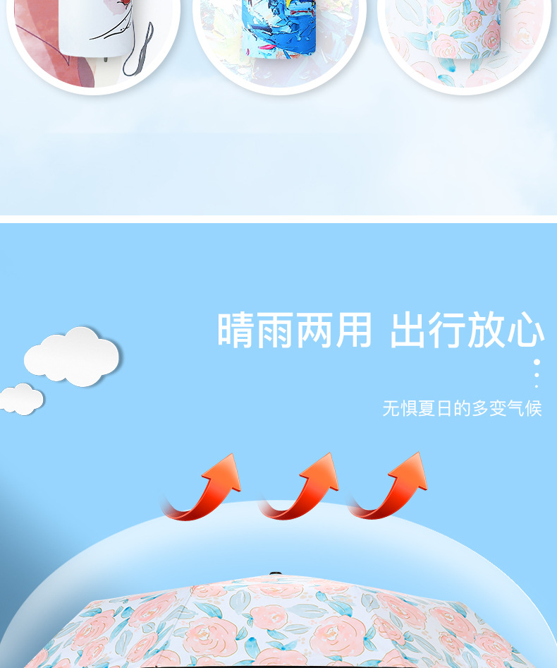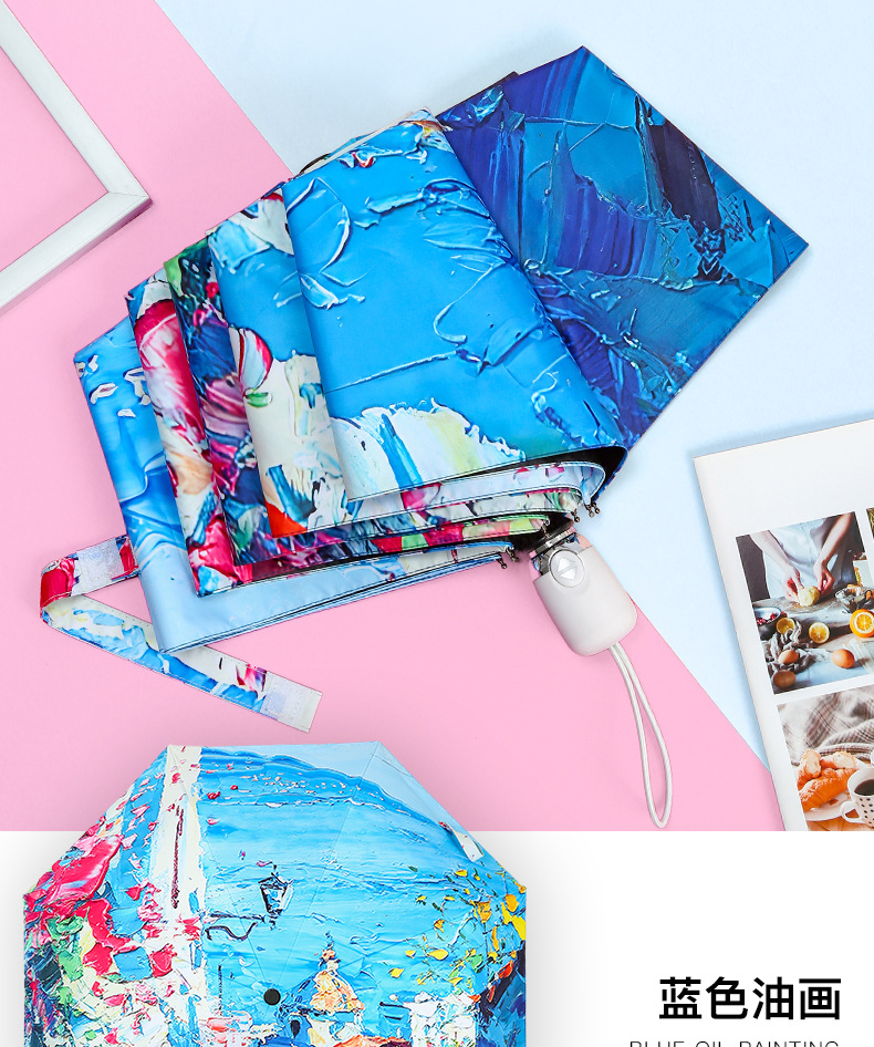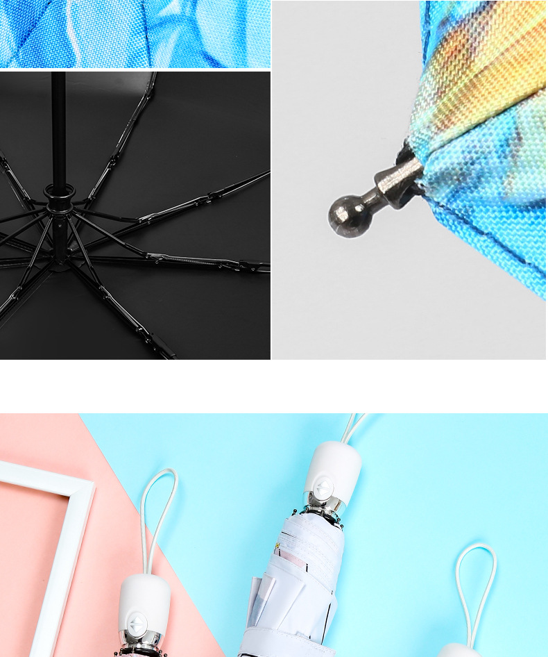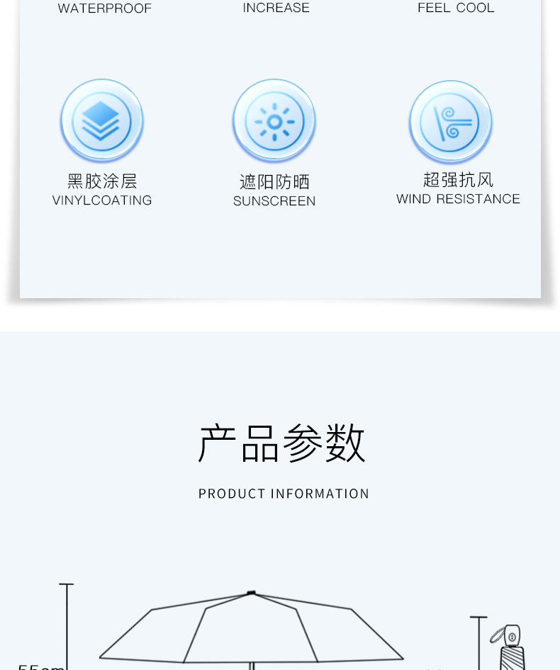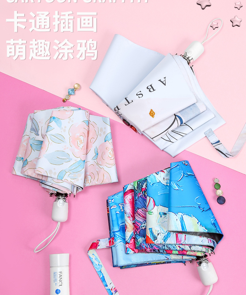 전자동 3 중 인쇄 양산 우산 검정 고무 태양 우산 이중 용도 선 스크린 우산 도매 인쇄 로고스토어 가기