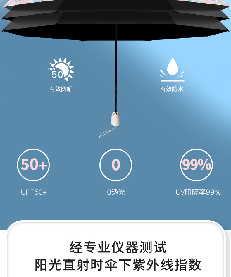 전자동 3 중 인쇄 양산 우산 검정 고무 태양 우산 이중 용도 선 스크린 우산 도매 인쇄 로고