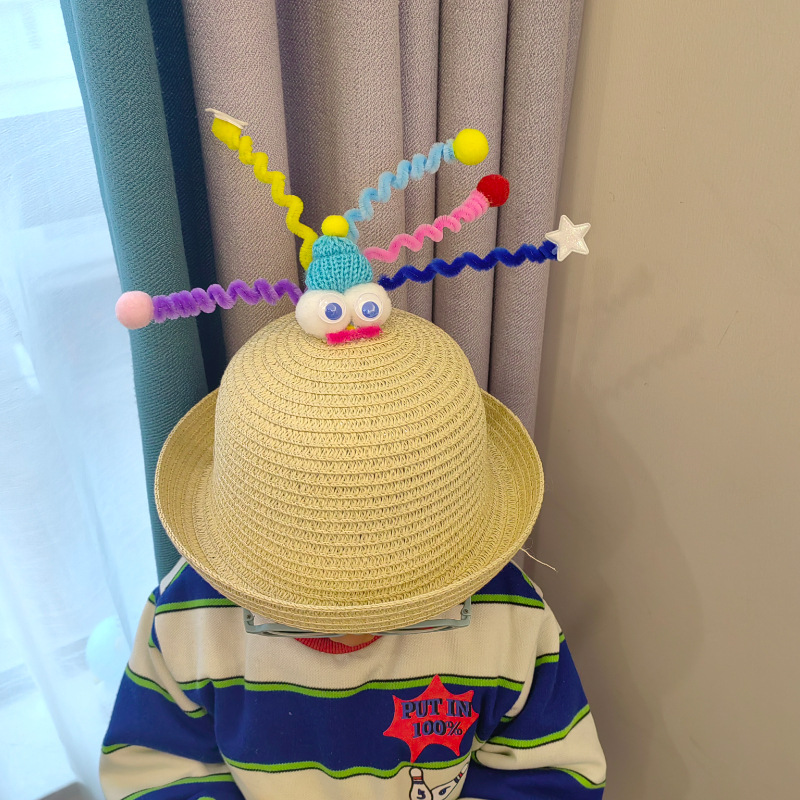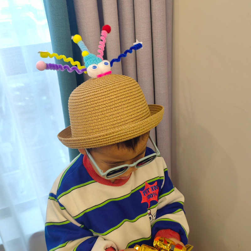 여름 어린 소녀 그늘 밀짚 모자 귀여운 모자 여자의 보물 여름 해변 모자 가방 자외선 차단제 모자 소년의 밀짚 모자