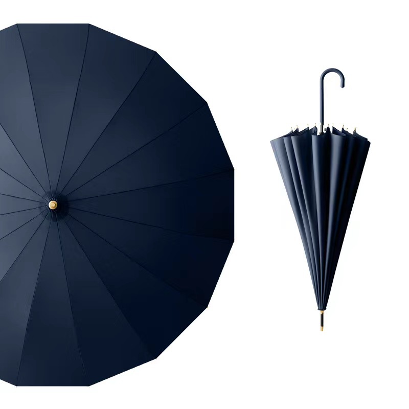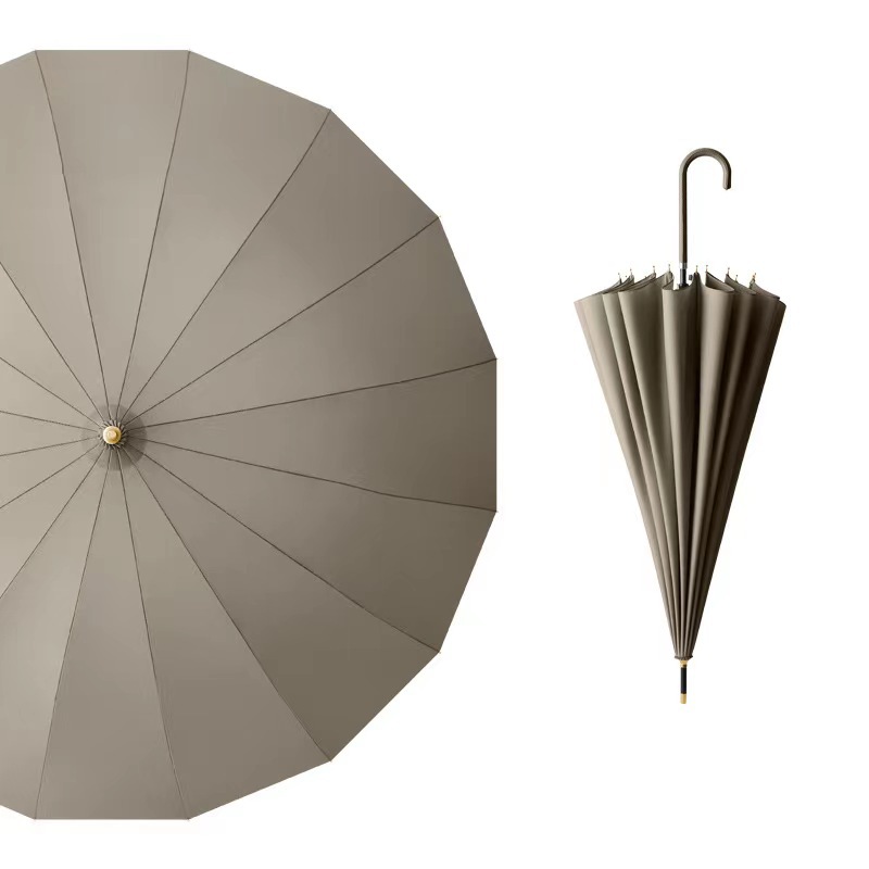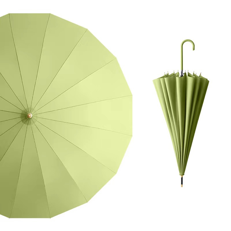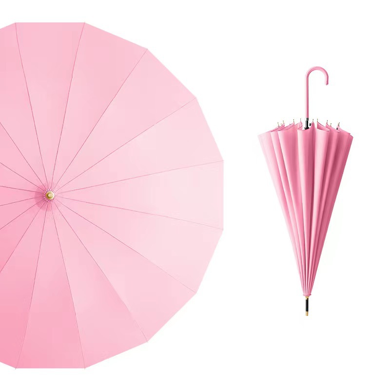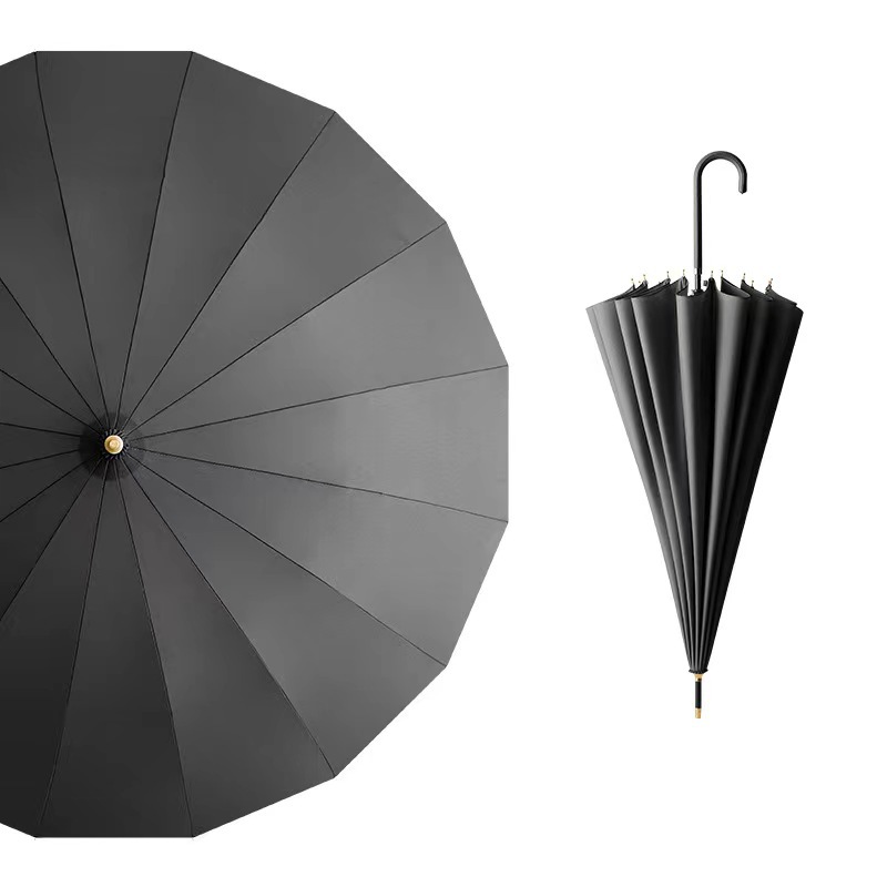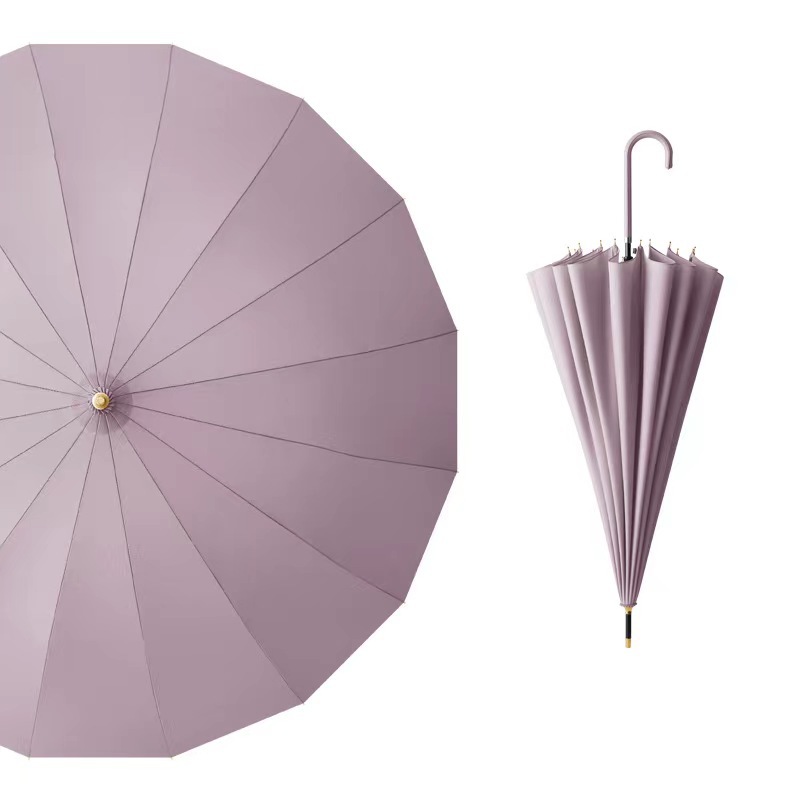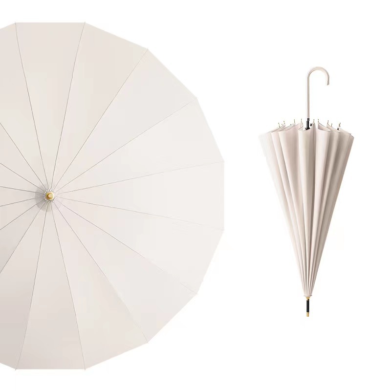16 뼈 신선한 스타일 가죽 곡선 핸들 자동 긴 손잡이 맑고 비오는 우산 검은 고무 자외선 차단제 양산 직선 막대 방수 커버 우산