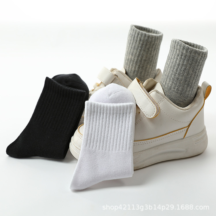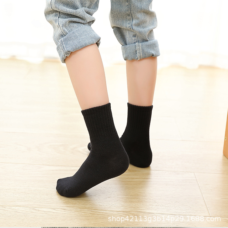 어린이 양말 빗질면 흰색 튜브 양말 봄과 가을 소년 소녀 블랙 사계절 대형 어린이 학생 양말스토어 가기