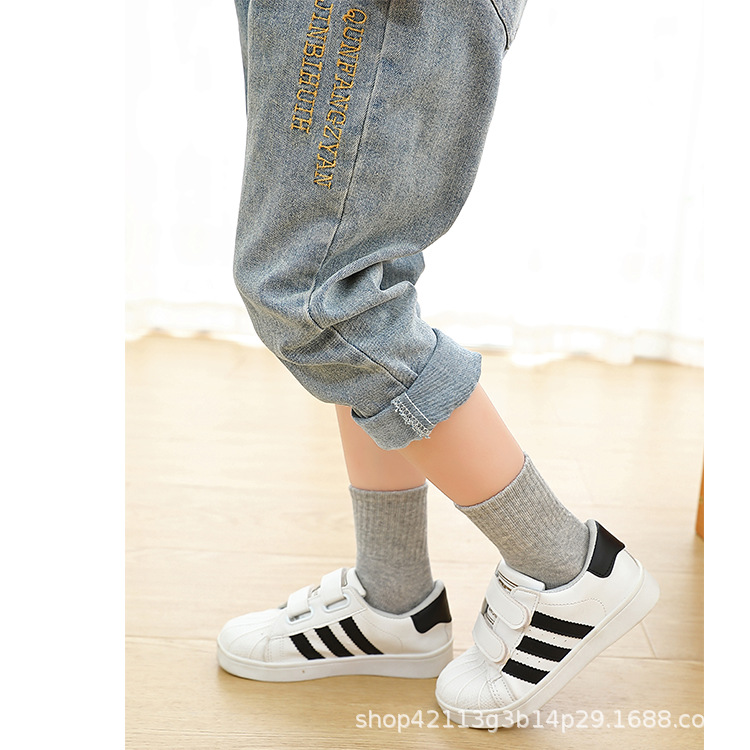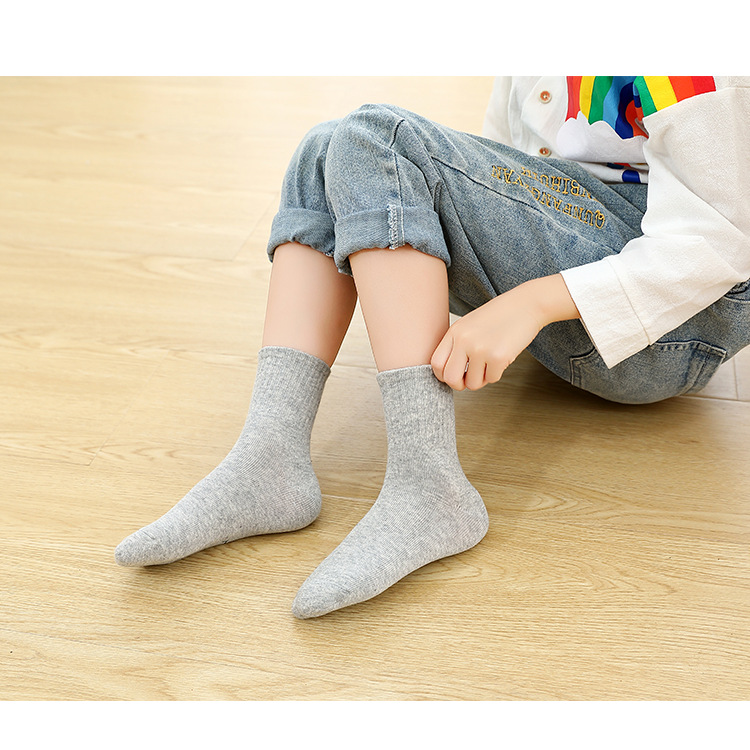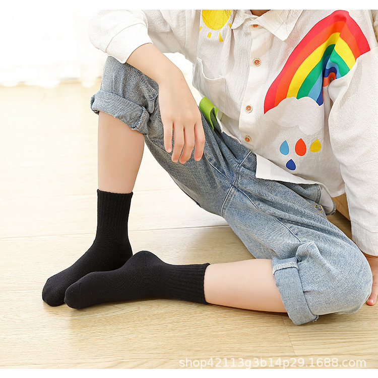 어린이 양말 빗질면 흰색 튜브 양말 봄과 가을 소년 소녀 블랙 사계절 대형 어린이 학생 양말