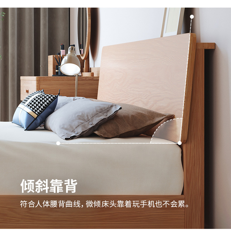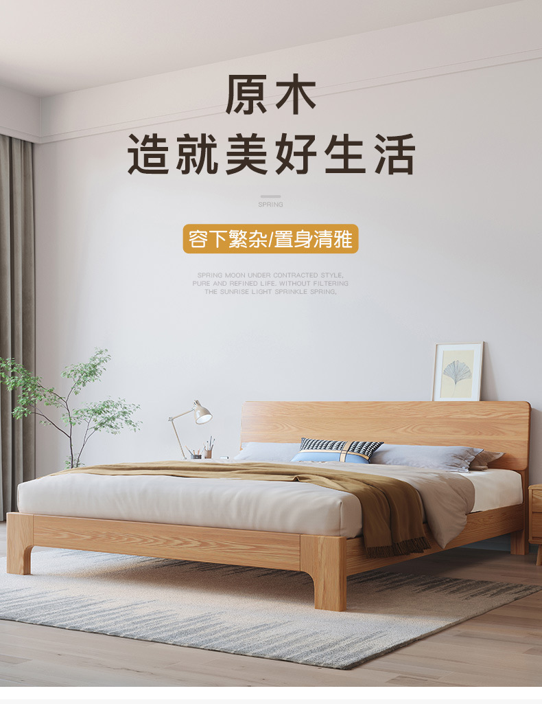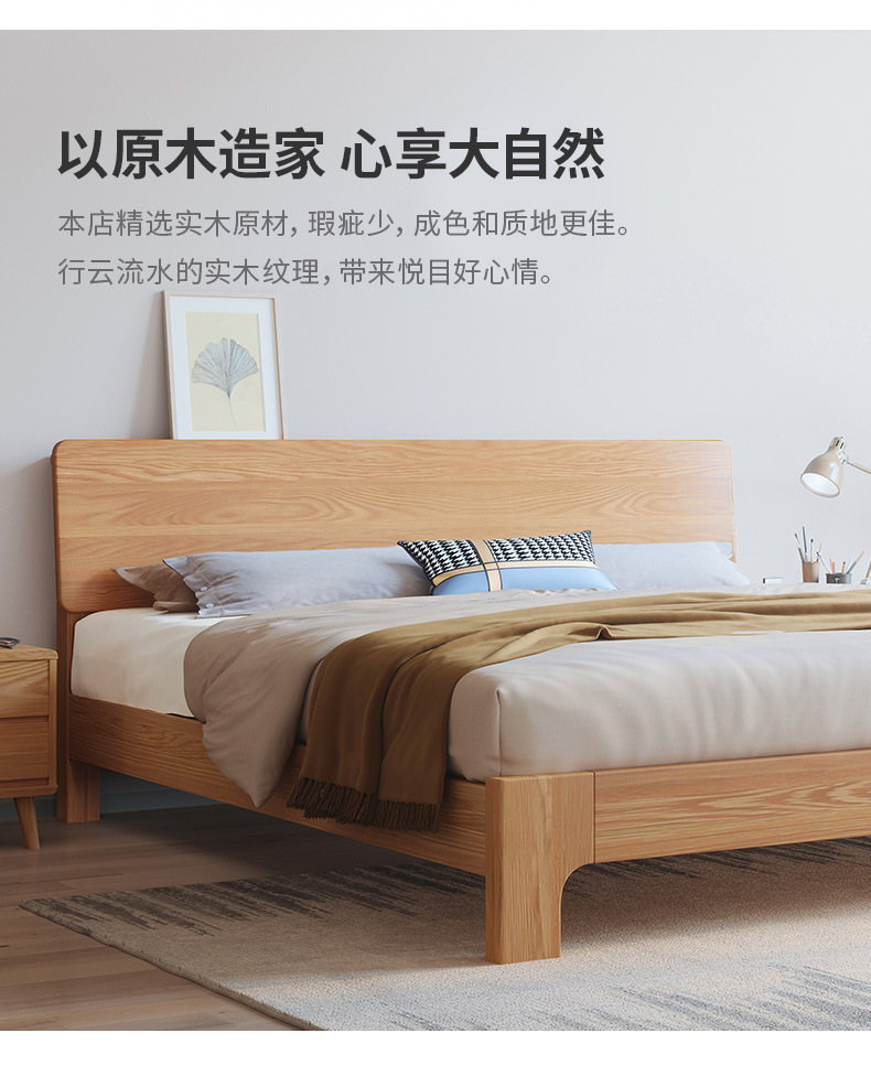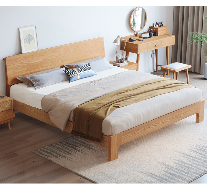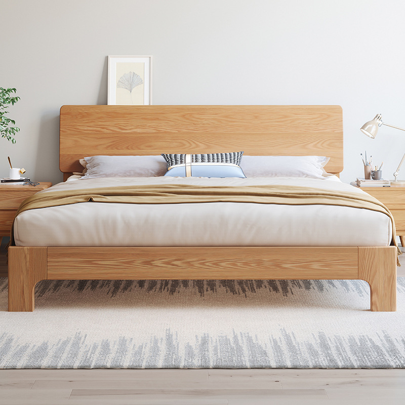 북유럽 단순 단단한 나무 침대 마스터 침실 더블 침대 중소 재 1.5 m1.8 m 큰 침대 공장 도매스토어 가기