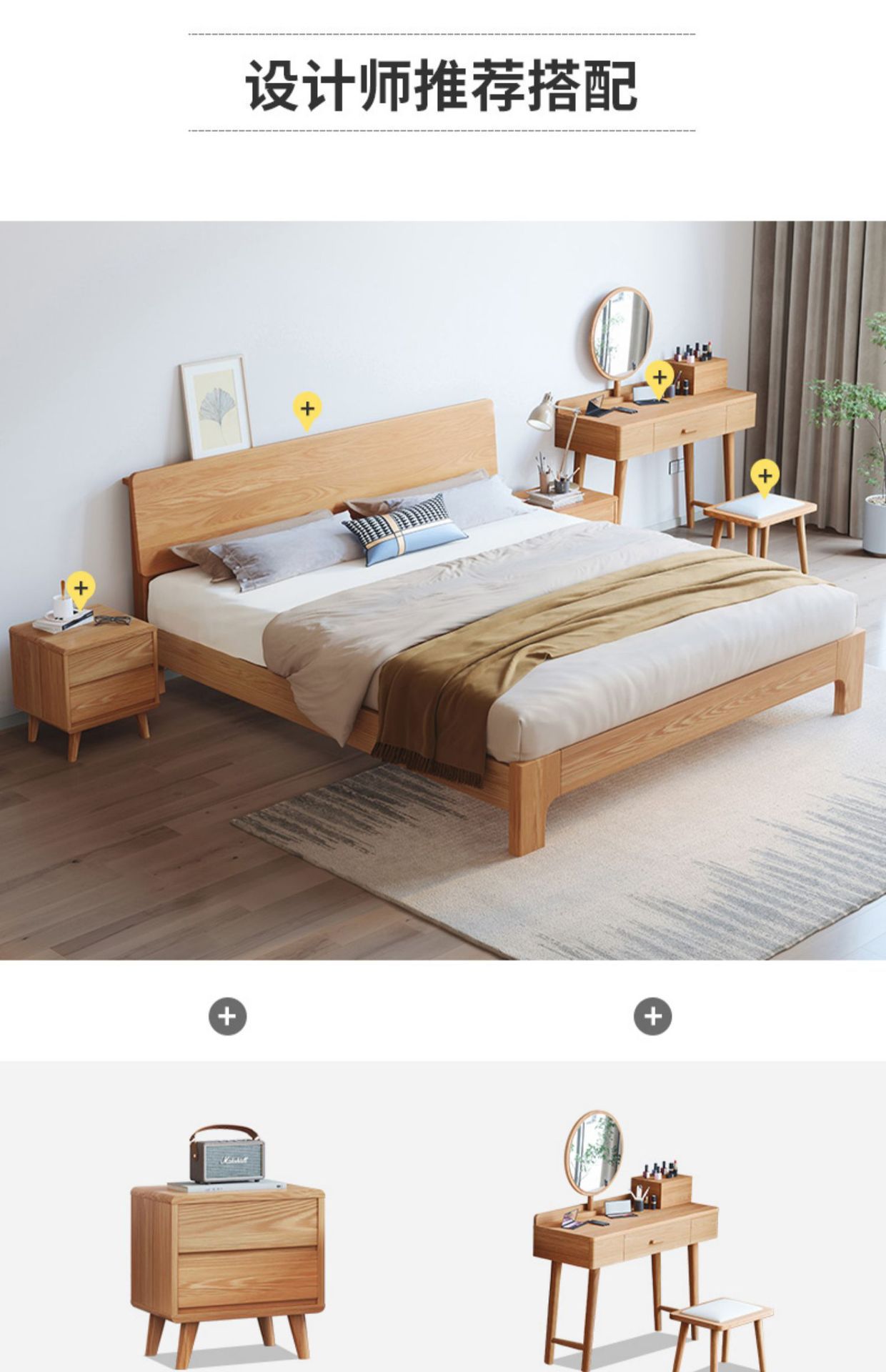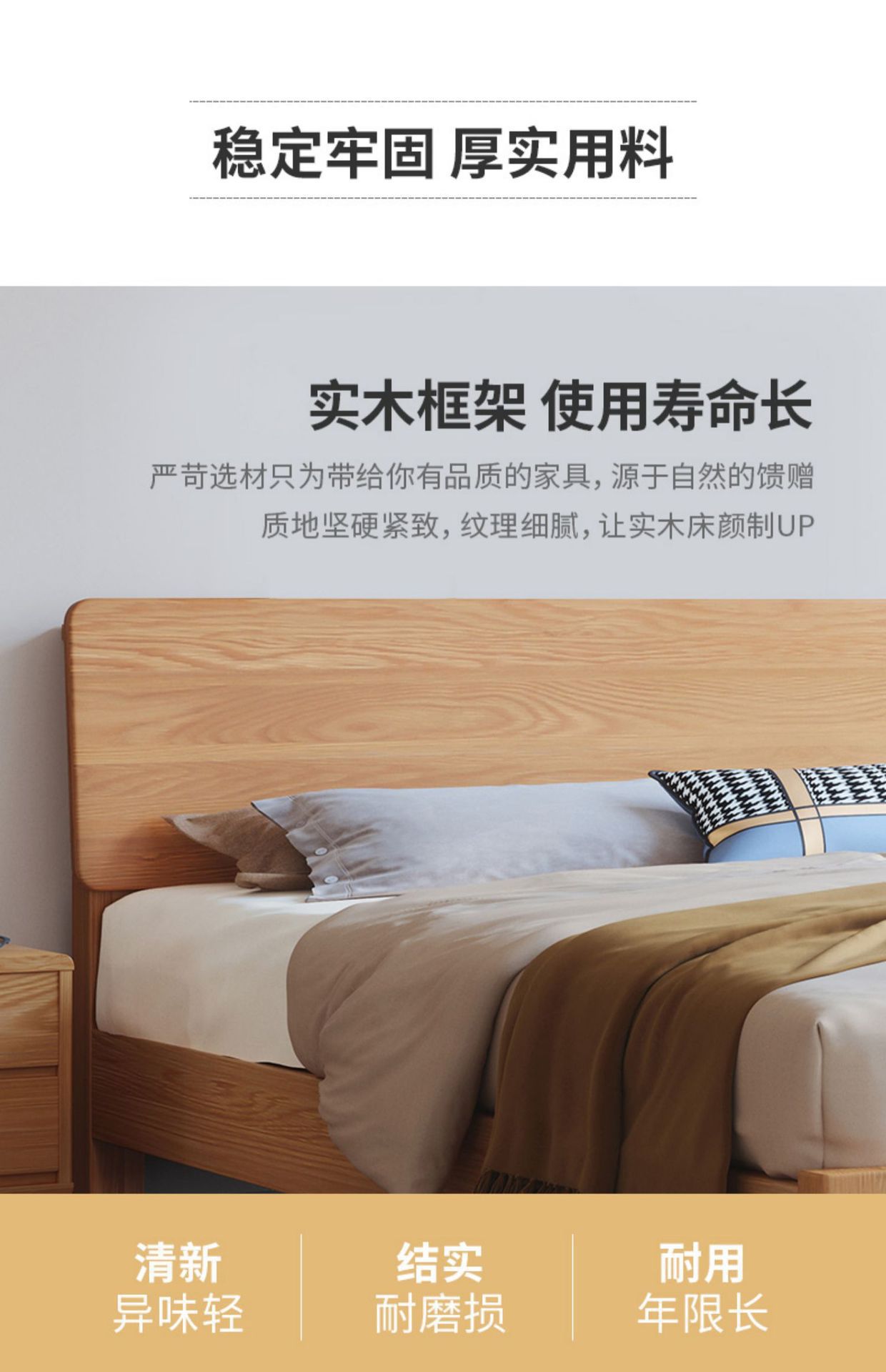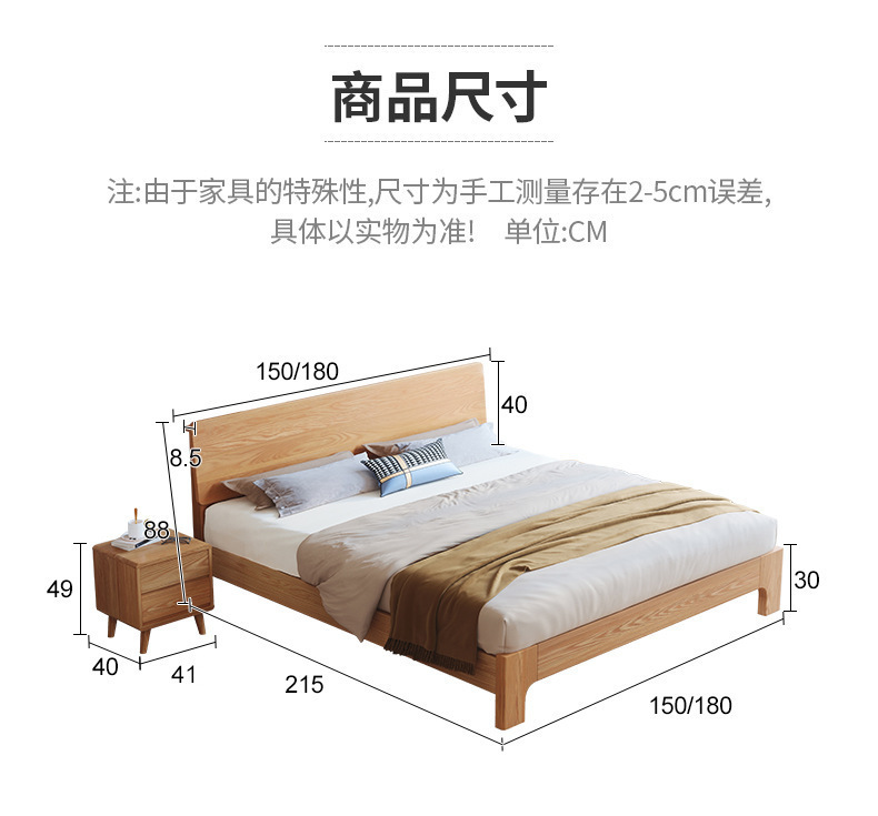 북유럽 단순 단단한 나무 침대 마스터 침실 더블 침대 중소 재 1.5 m1.8 m 큰 침대 공장 도매스토어 가기