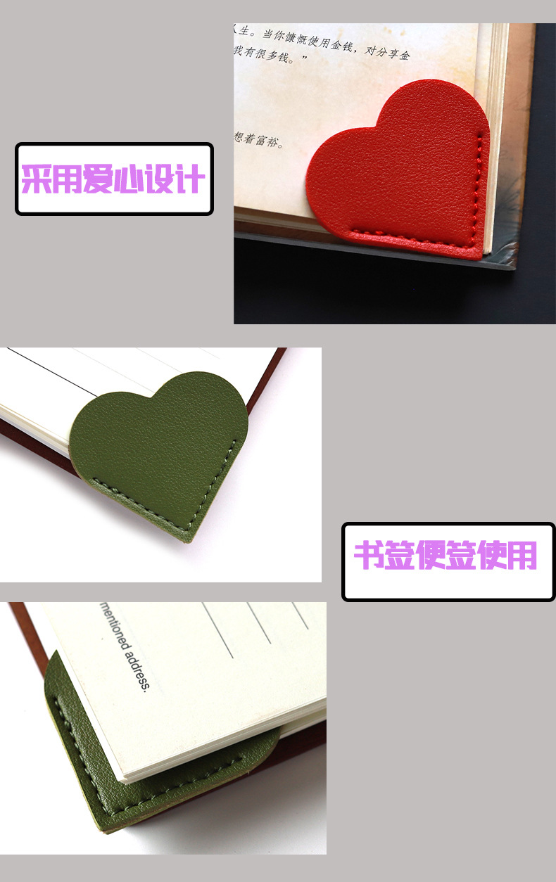PU 가죽 사랑 스타일 절묘한 소책자 비즈니스 학생 도서관 휴대용 선물 하트 모양의 만화 창조적 인 책갈피