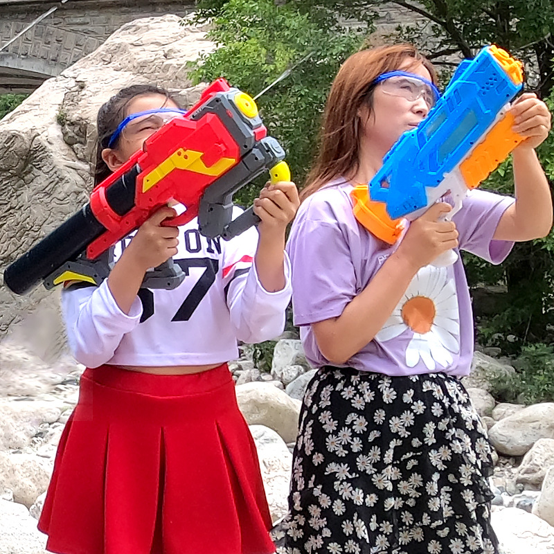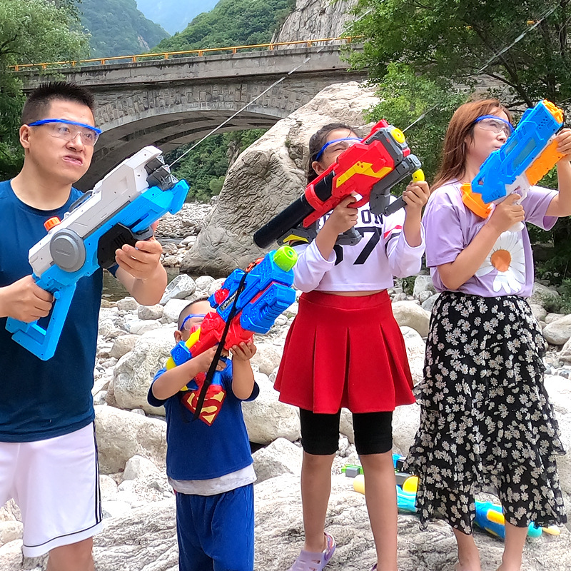 여름 해변 장난감 물 싸움을위한 대용량 가압 단일 및 이중 스프링클러 국경 어린이 장난감 공기압 물총스토어 가기