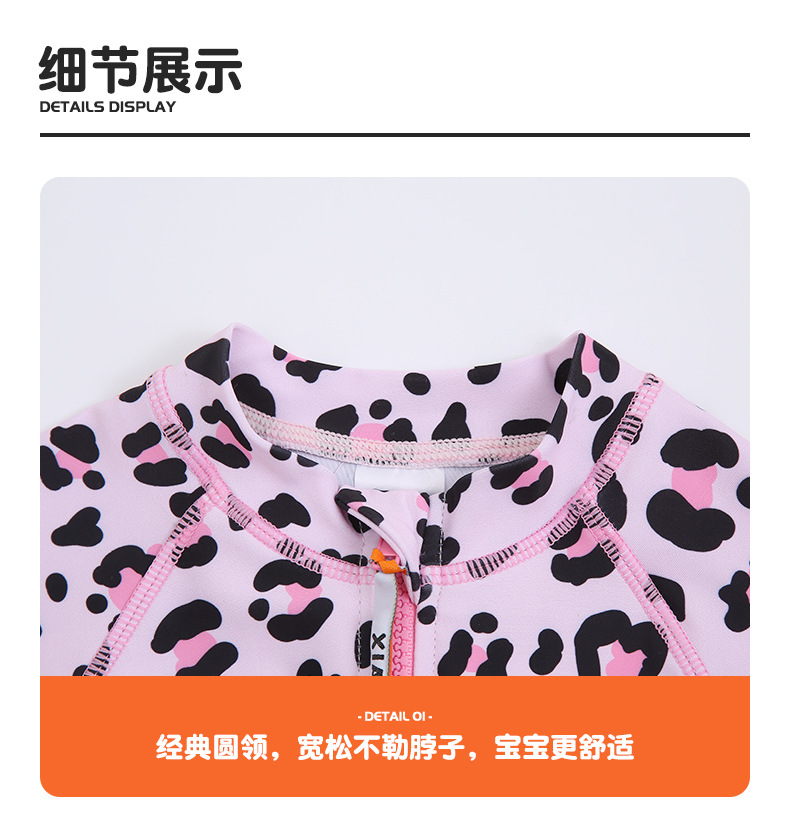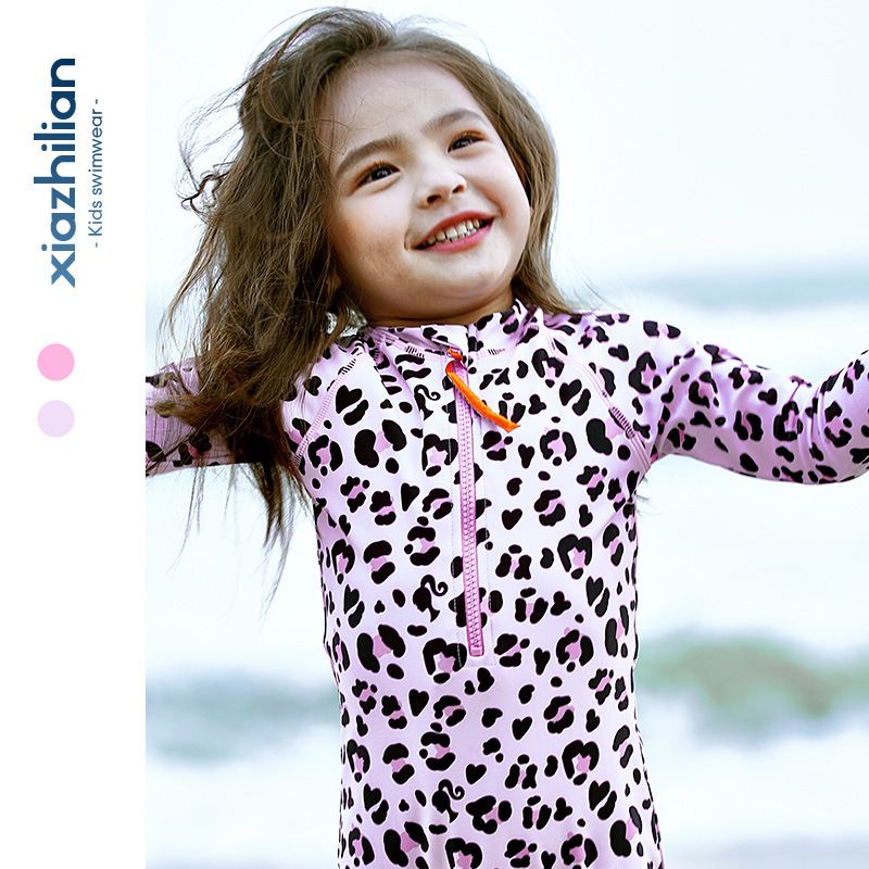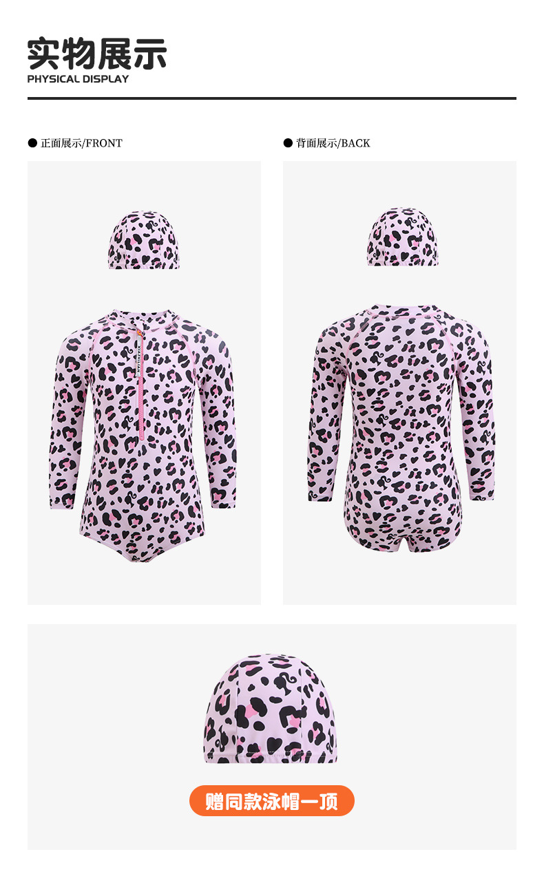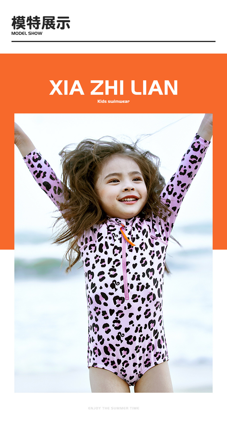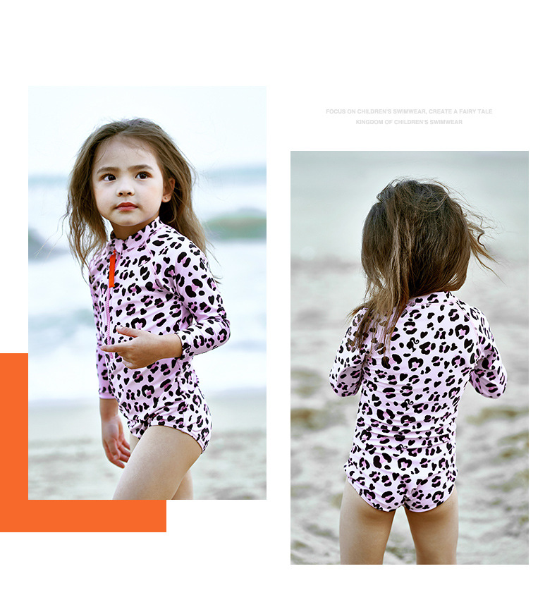 韩国女童女宝宝豹纹连体游泳衣小童公主度假女孩长袖防晒冲浪泳装