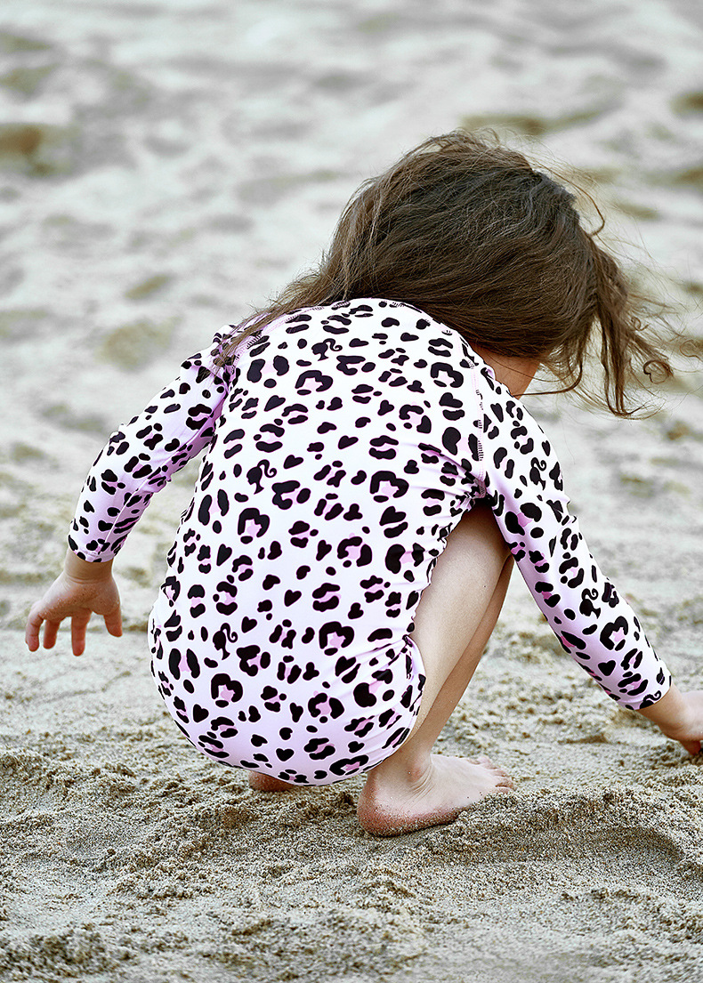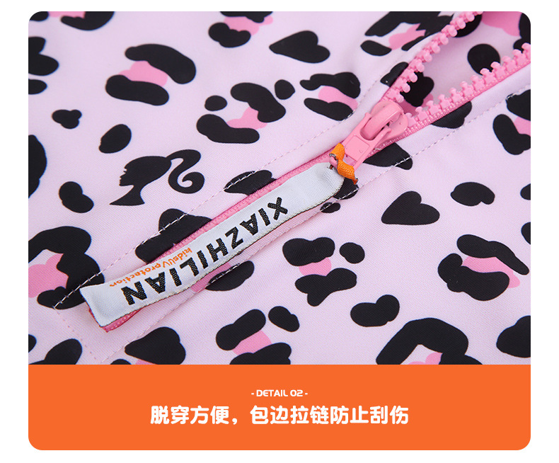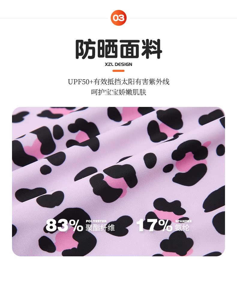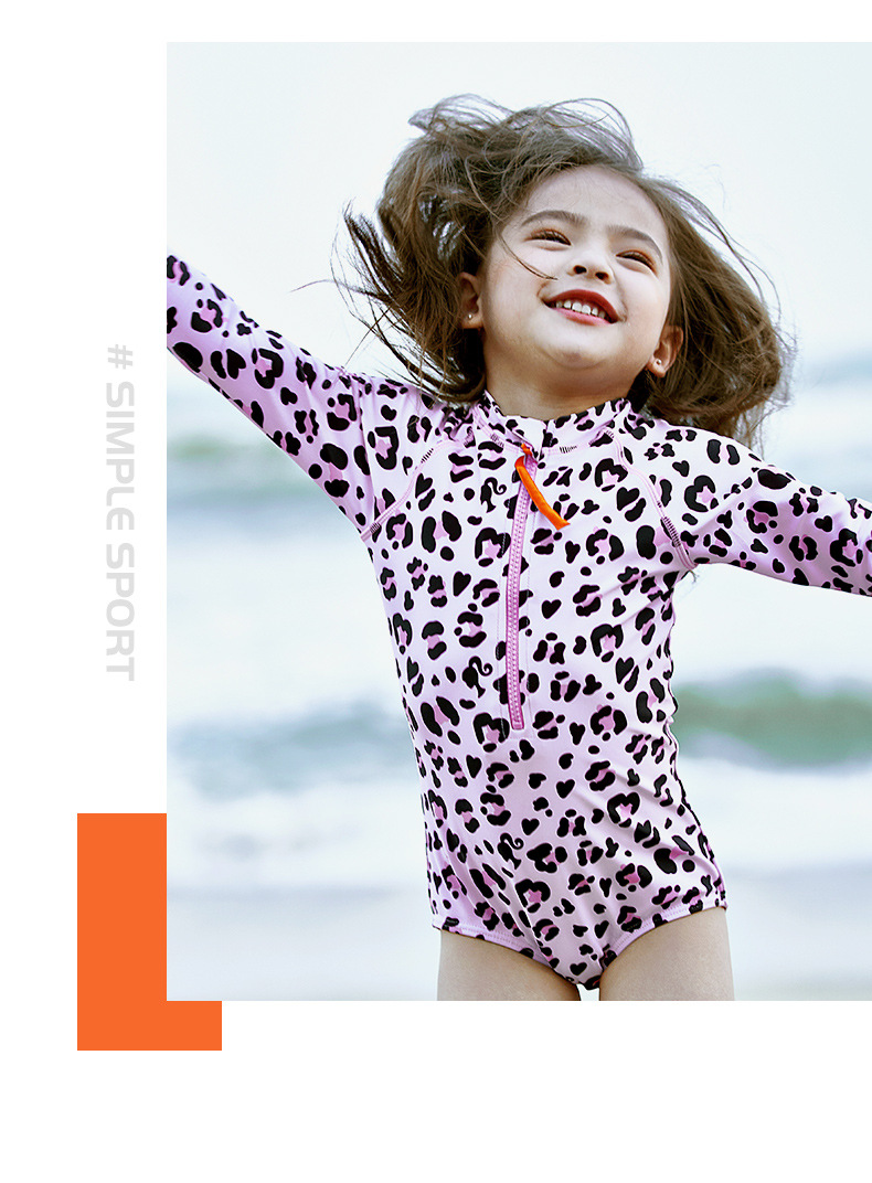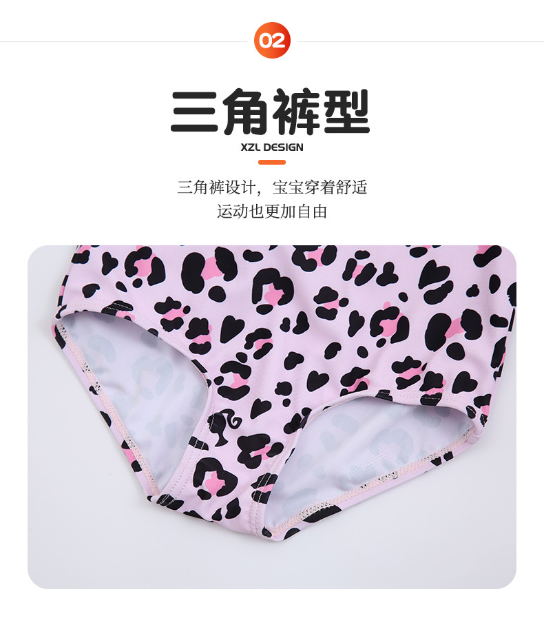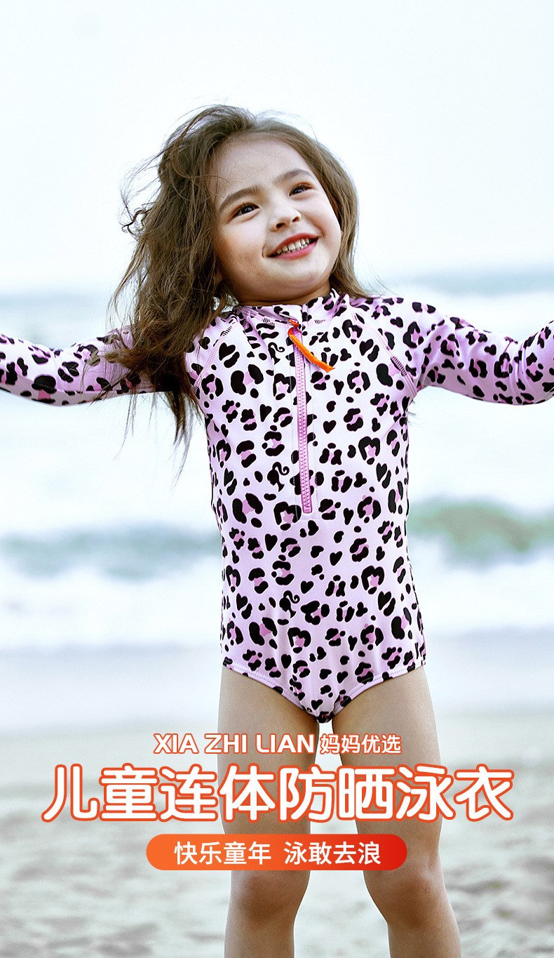 韩国女童女宝宝豹纹连体游泳衣小童公主度假女孩长袖防晒冲浪泳装