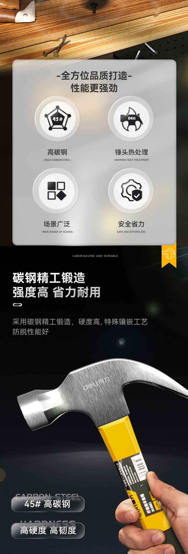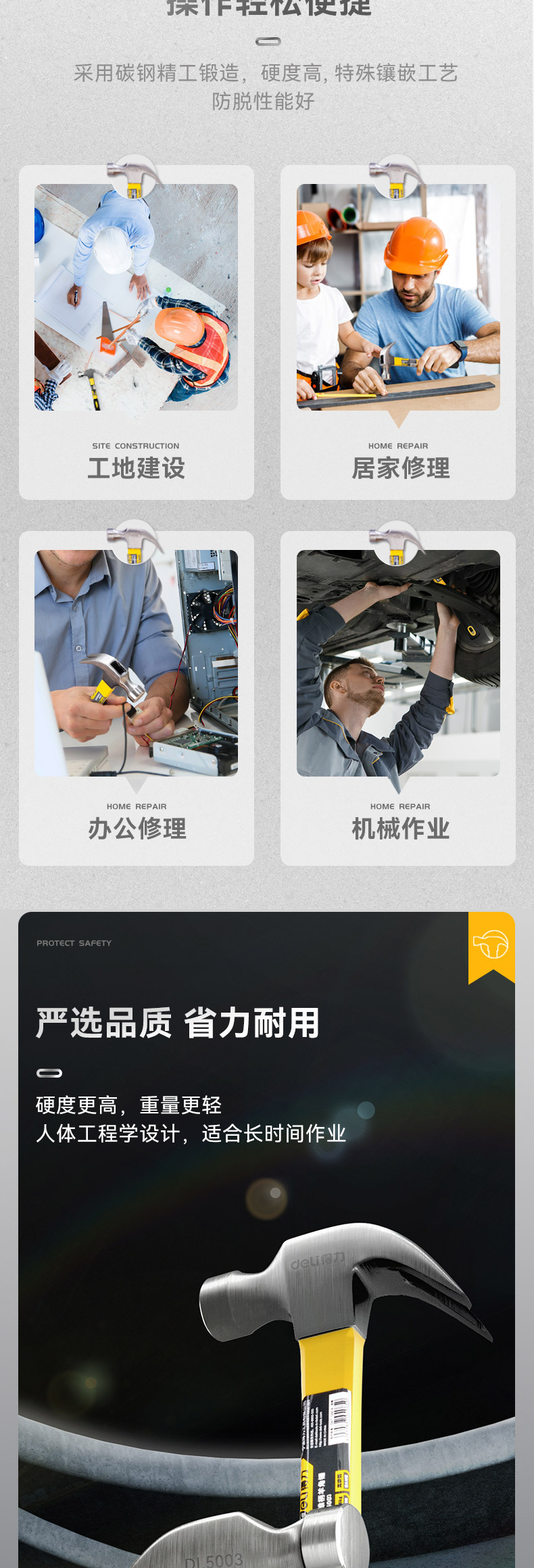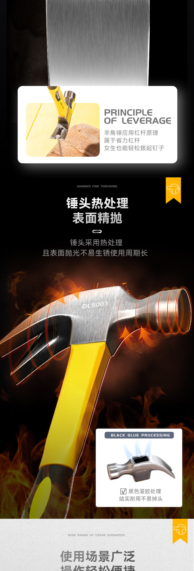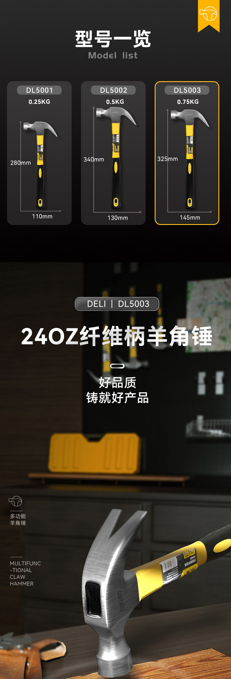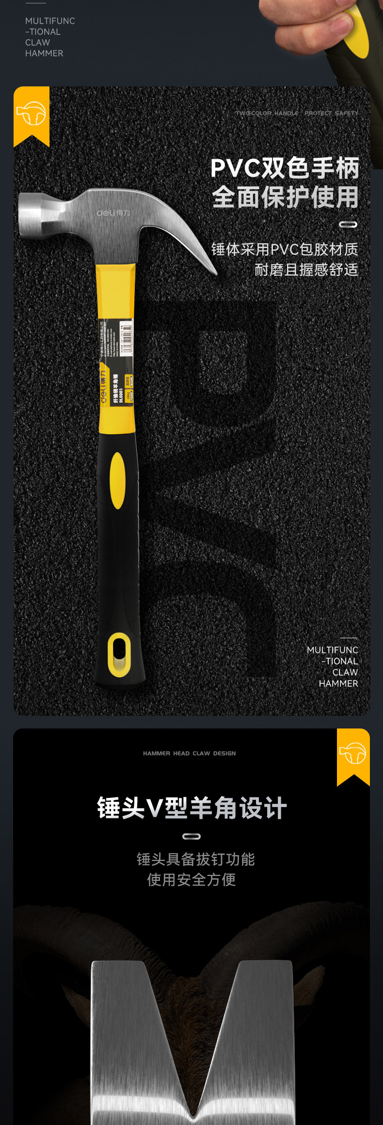 델리 (델리) 클로 해머 해머 다용도 네일 해머 해머 해머 해머 섬유 핸들 0.7kg DL5003