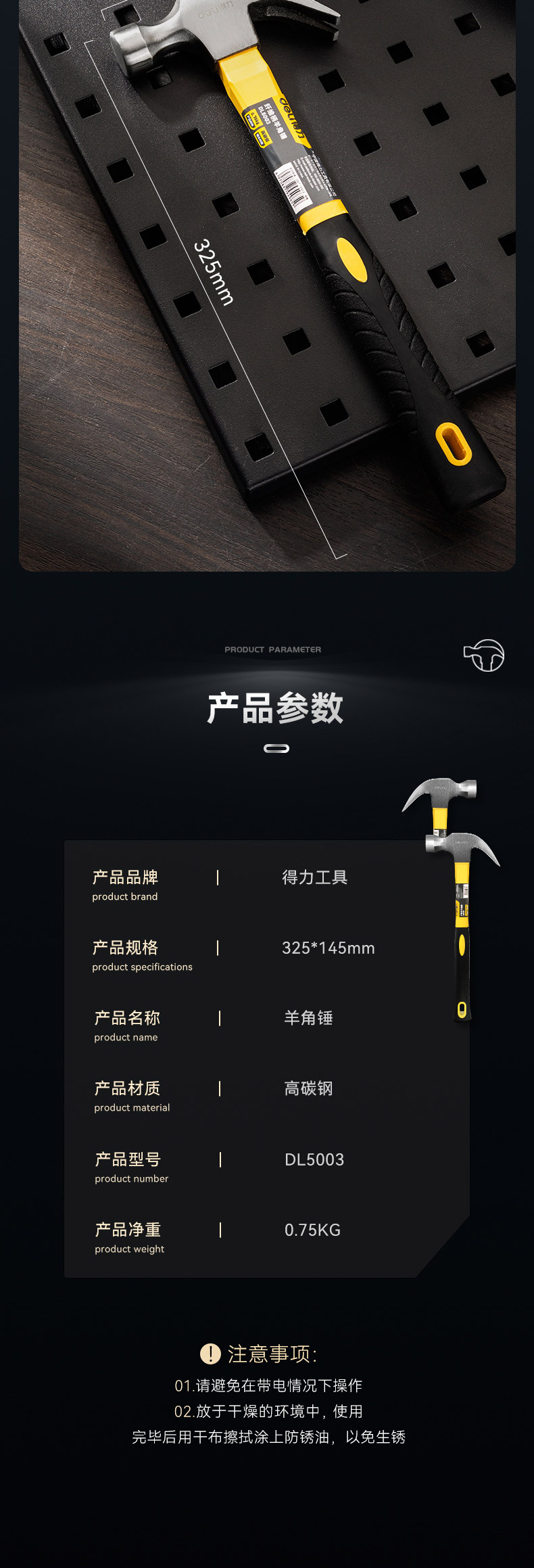 델리 (델리) 클로 해머 해머 다용도 네일 해머 해머 해머 해머 섬유 핸들 0.7kg DL5003스토어 가기