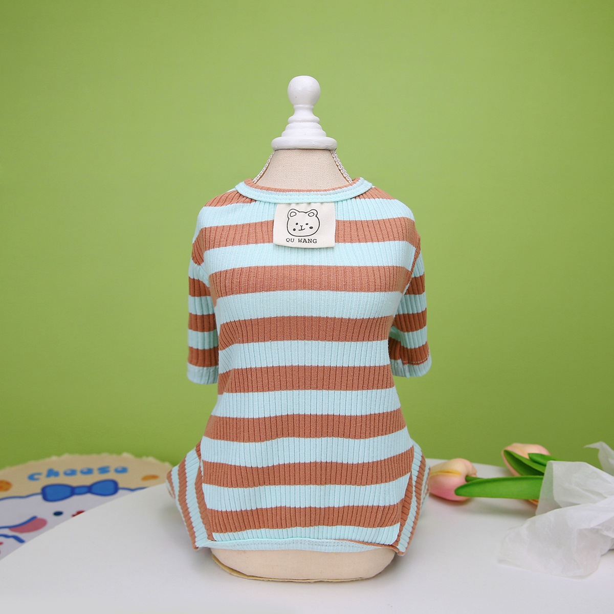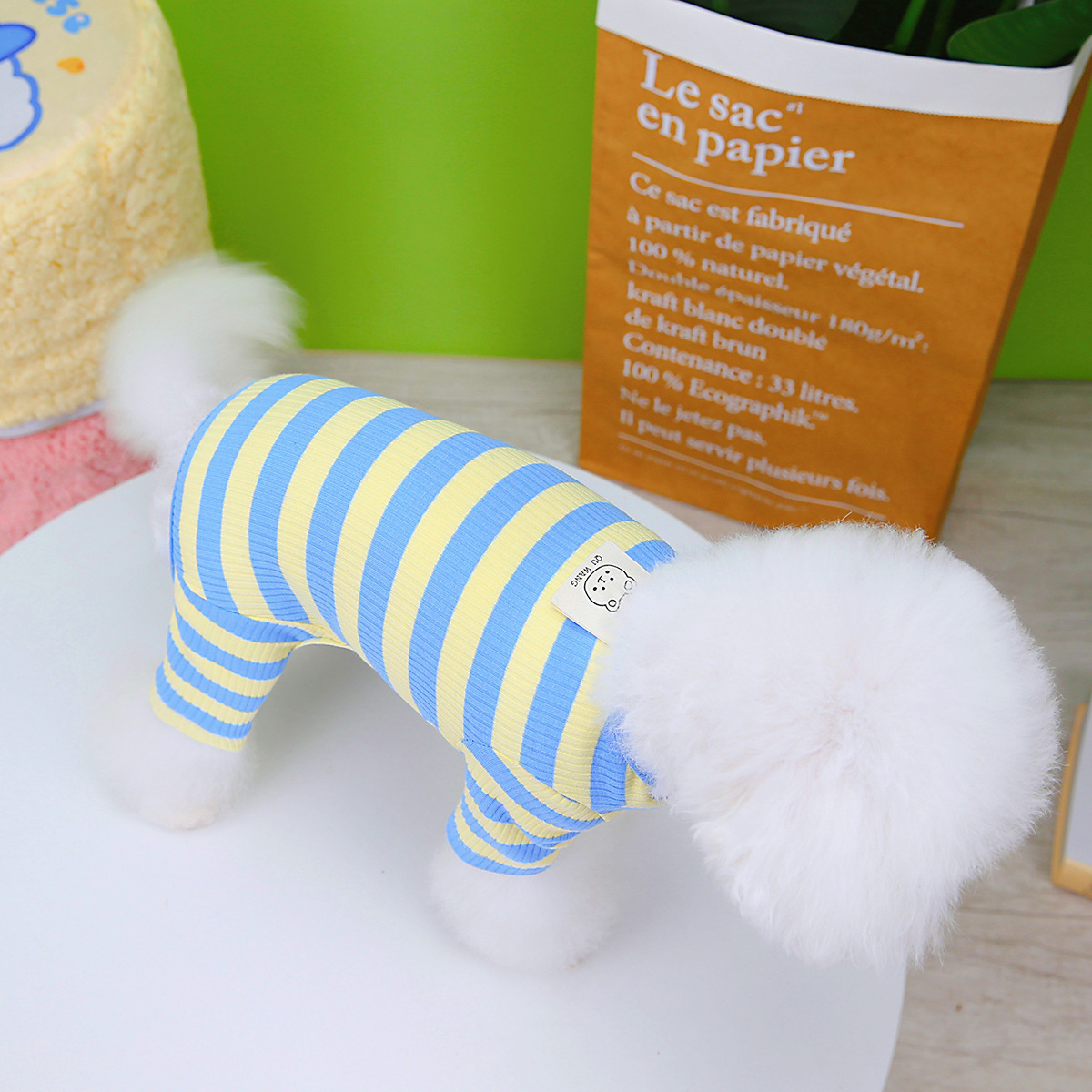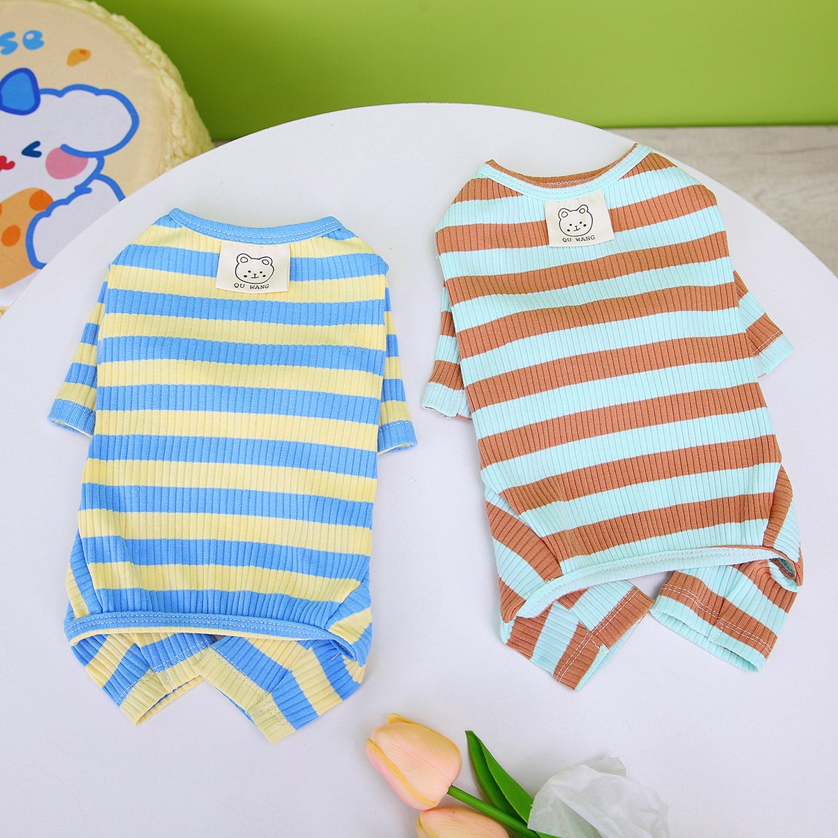 강아지 고양이 애완동물 옷 봄 여름 얇은 소형견 테디 포메라니안 의류 잠옷 23줄무늬 네발옷 홈웨어스토어 가기