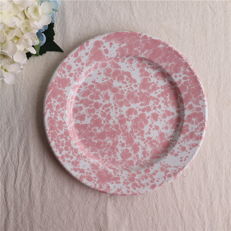인상 에나멜 수출 미국 스플래시 잉크 에나멜 접시 핑크 포인트 아침 식사 접시 희미한 샐러드 플랫 플레이트 플라노 플레이트