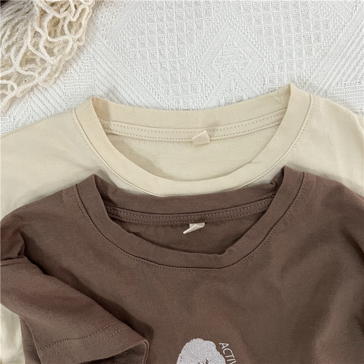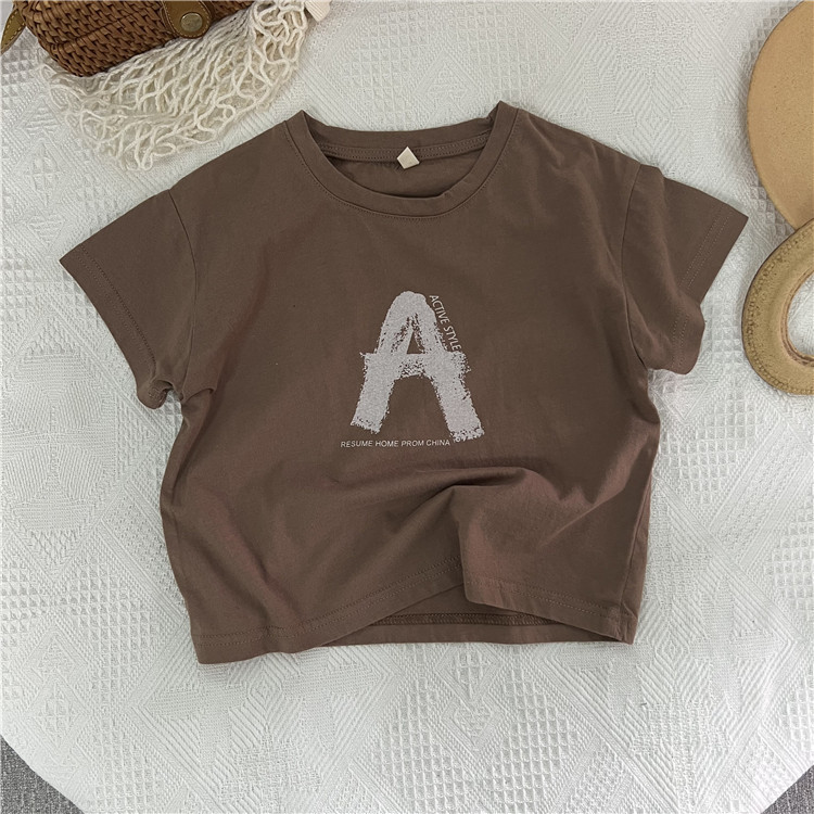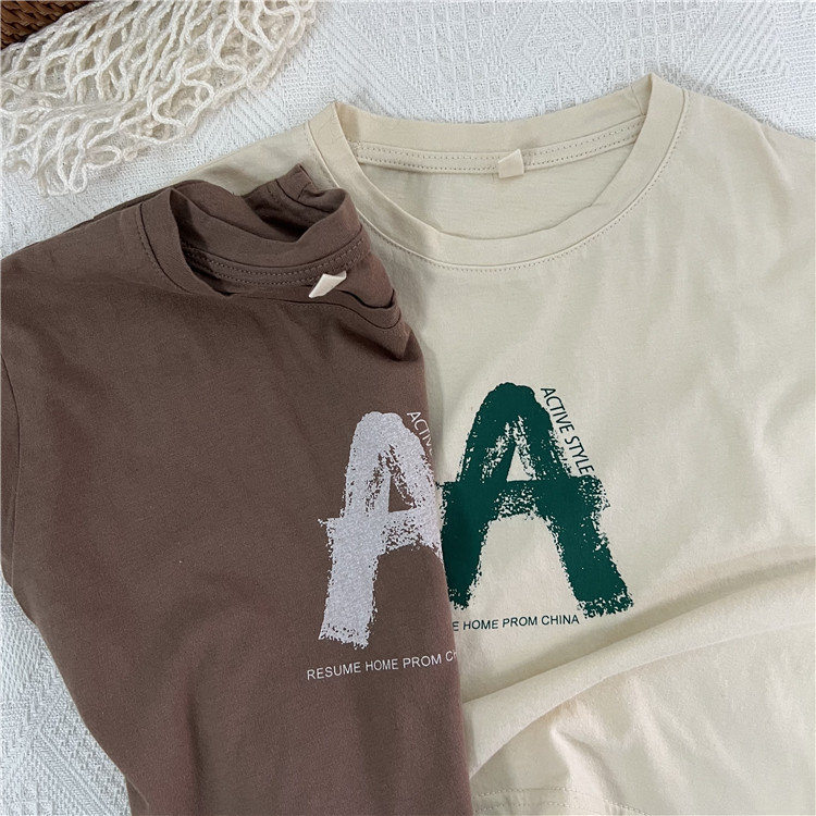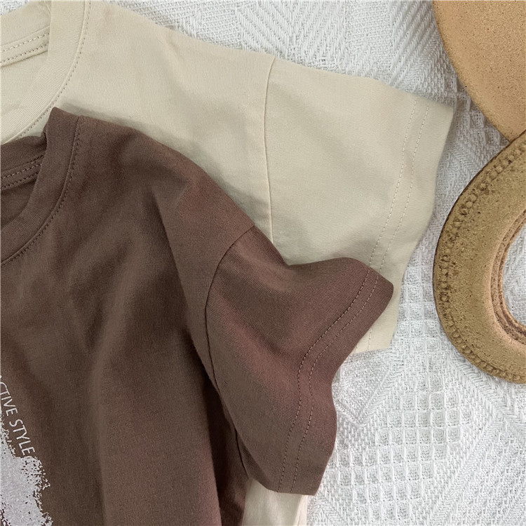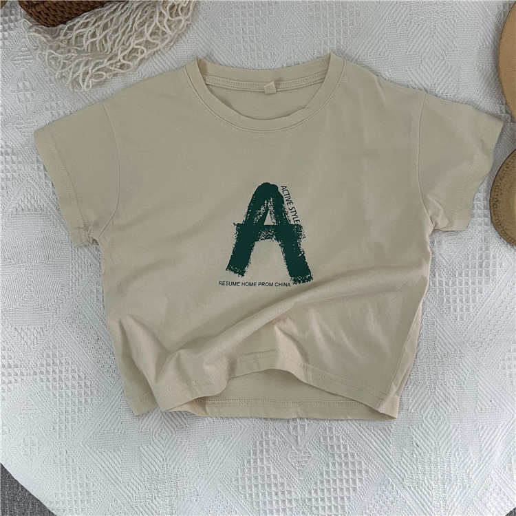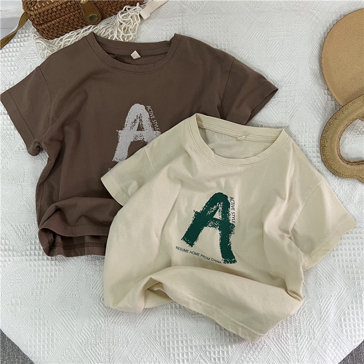 새로운 여름 어린이 티셔츠 반팔 한국 스타일 바닥 셔츠 소년 라운드 넥 인쇄 된 편지 소녀 탑 다목적 및 느슨한스토어 가기