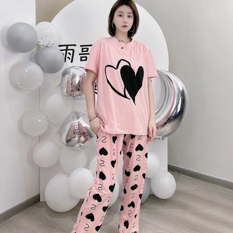 잠옷 여성의 봄과 여름 새로운 반팔 바지 캐주얼 플러스 사이즈 여성용 라운드 넥 풀오버 홈웨어 편안한 의상스토어 가기