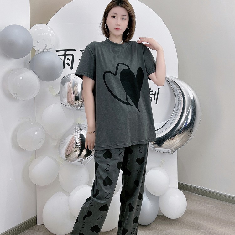 잠옷 여성의 봄과 여름 새로운 반팔 바지 캐주얼 플러스 사이즈 여성용 라운드 넥 풀오버 홈웨어 편안한 의상