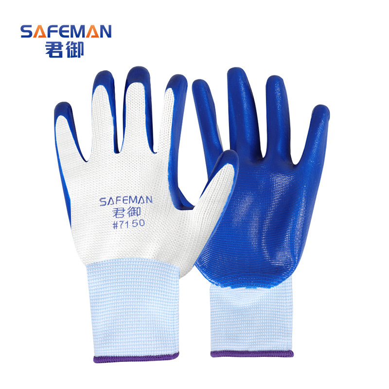 Junyu 7150 나일론 니트릴 장갑 미끄럼 방지 내마모성 접착제 디핑 노동 장갑 내유성 통기성 접착제 장갑