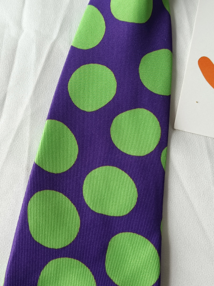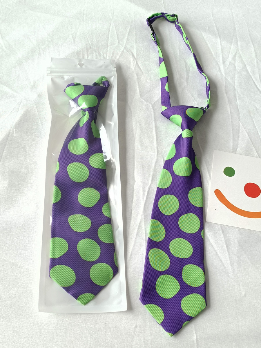 남자와 여자를위한 잘 생긴 보라색 녹색 물방울 무늬 짧은 넥타이 밝은 색상 과장된 컬러 사진 매듭이없는 학생스토어 가기