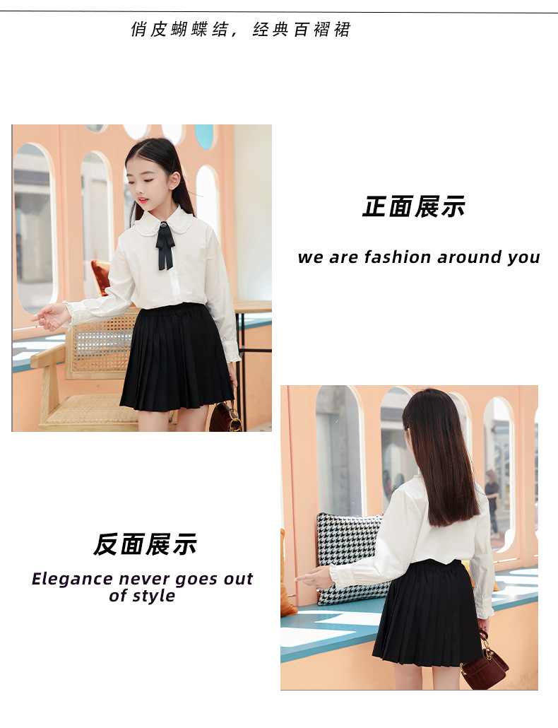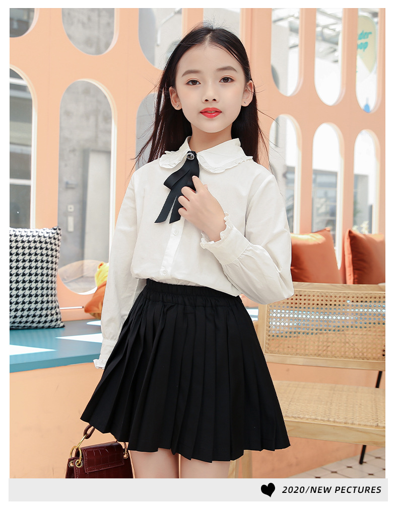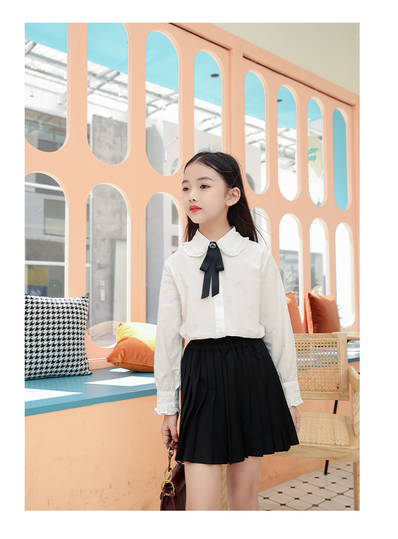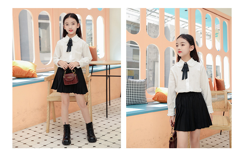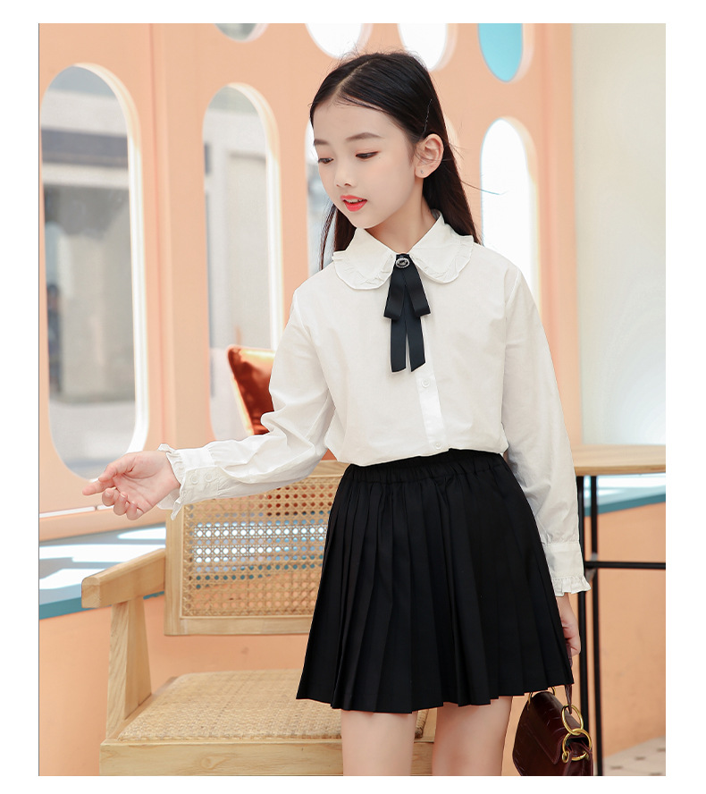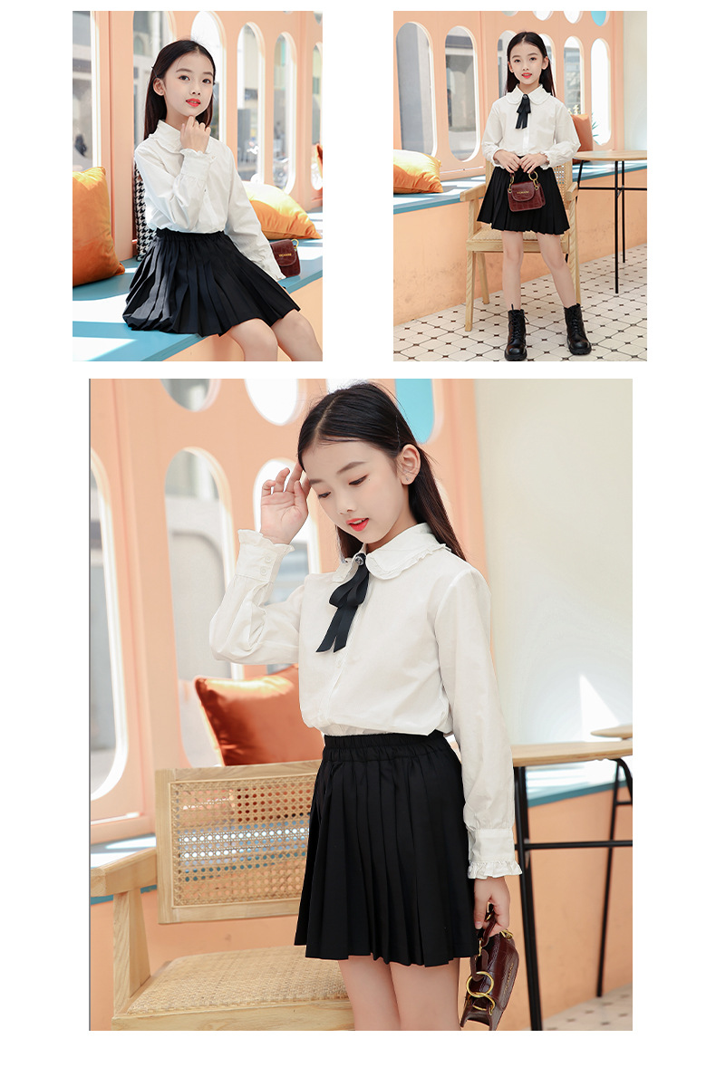 女童衬衫套装裙2024春秋装儿童打底白衬衫JK制服百褶短裙两件套