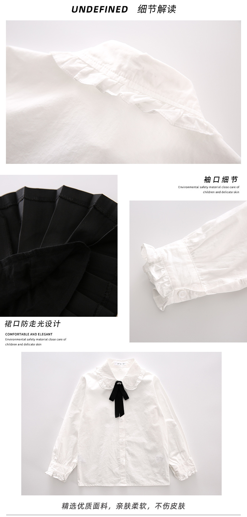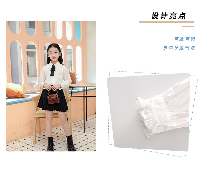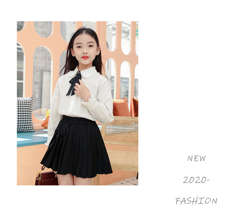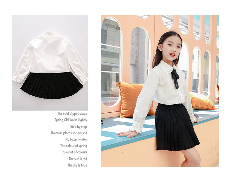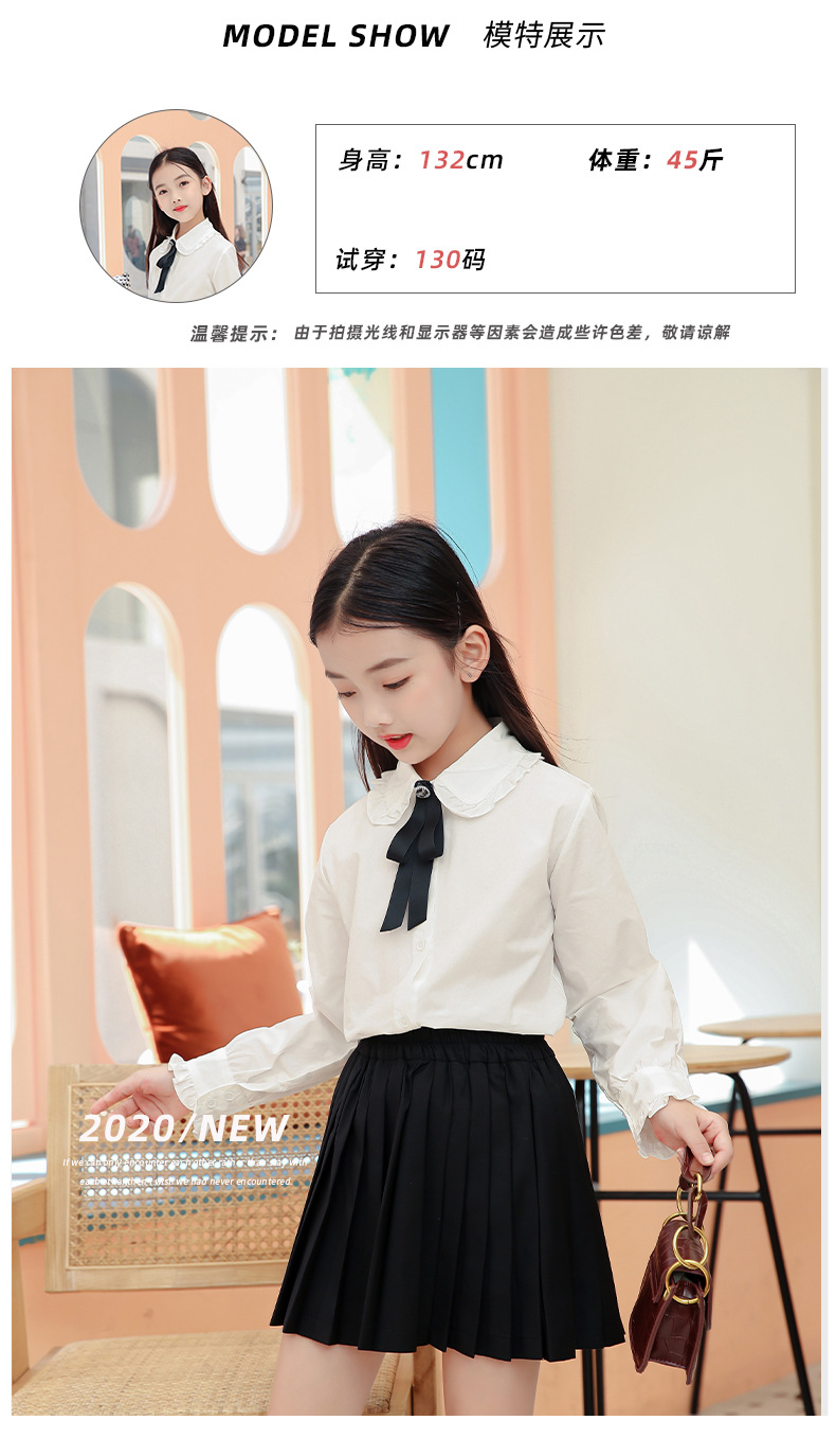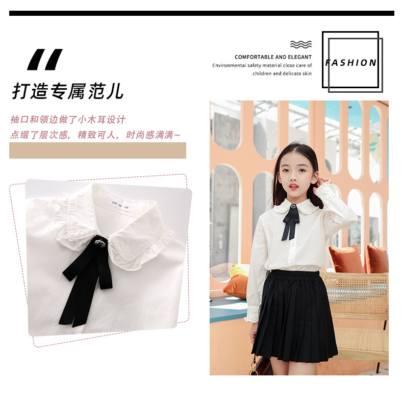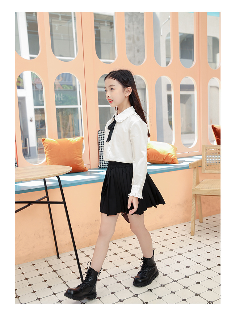 女童衬衫套装裙2024春秋装儿童打底白衬衫JK制服百褶短裙两件套