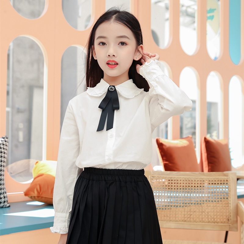 여아 셔츠 정장 스커트 2025 봄 가을 아동용 기본 흰색 셔츠 JK 교복 플리츠 스커트 투피스 세트