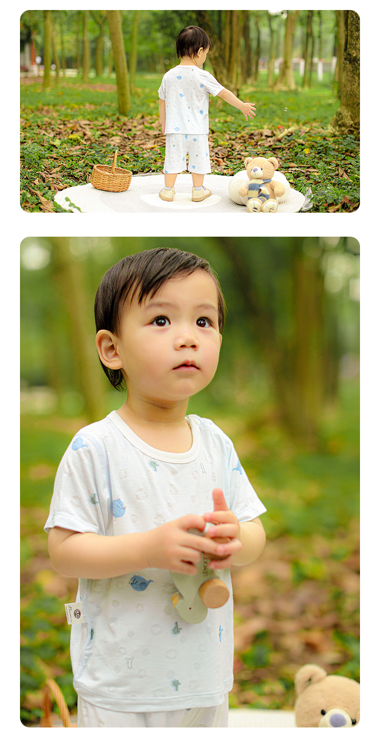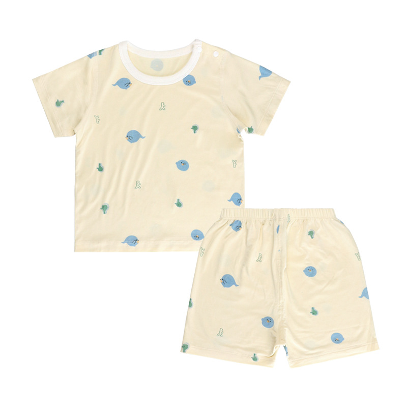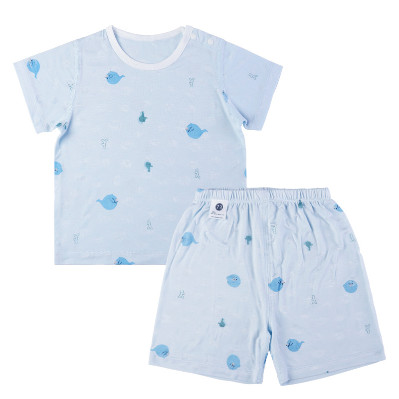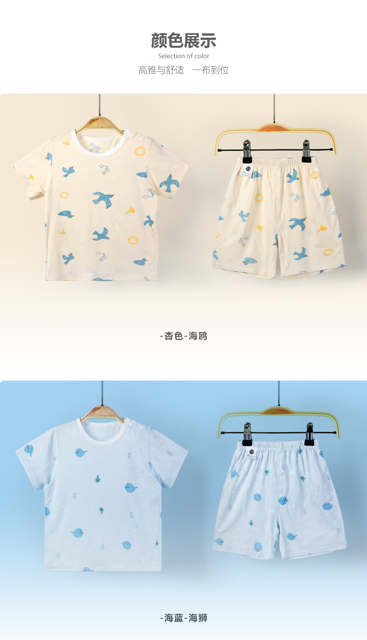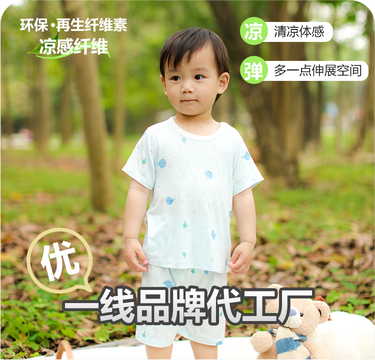 남자와 여자의 여름 대나무 섬유 반팔 반바지 가정 의류 아기와 어린 아이의 짧은 등반 여름 세트 어린이 복장스토어 가기