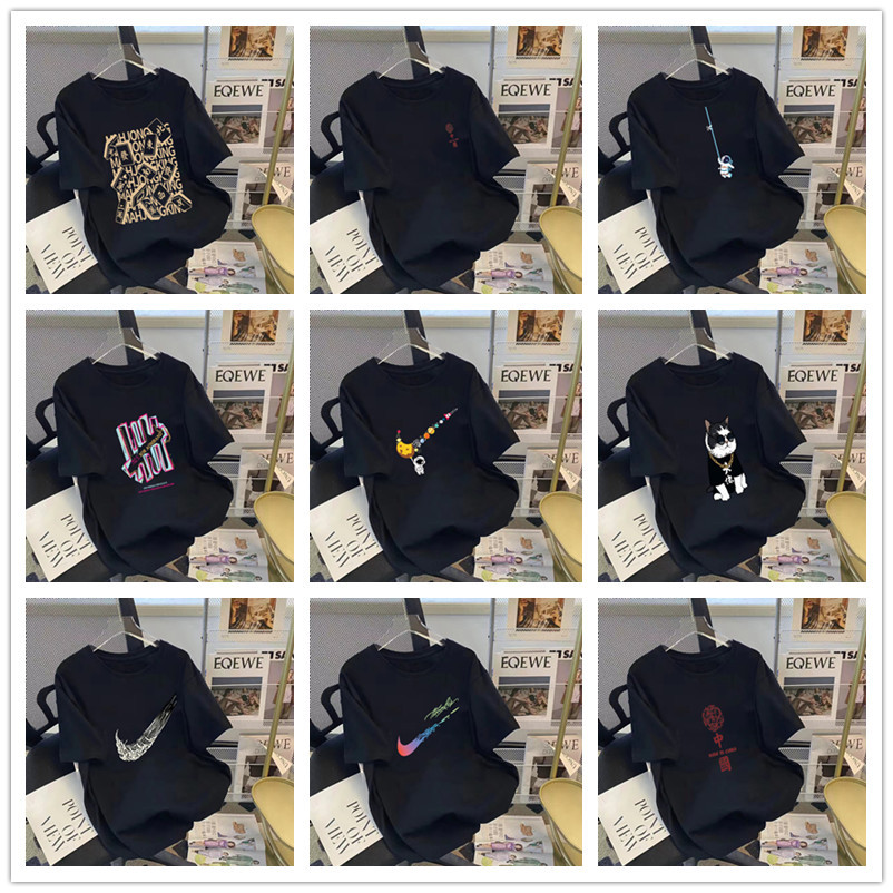 2023 여름 신상품 면 남성용 짧은 티셔츠 공장 공급 남성용 반팔 느슨한 패션 브랜드 인쇄 반 소매 라이브 t스토어 가기