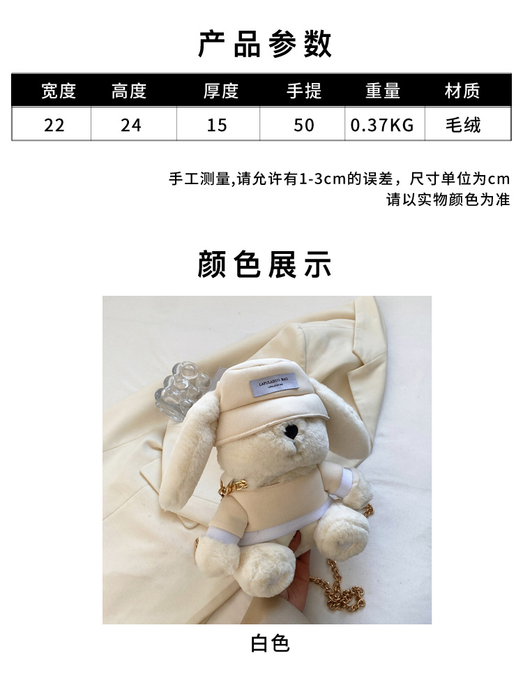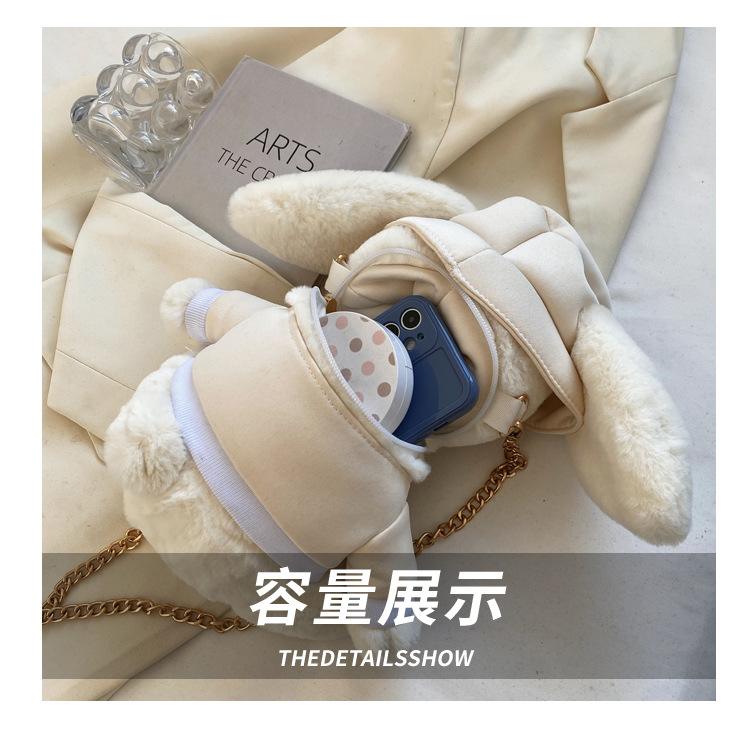 2023 새로운 가을과 겨울 귀여운 사랑스러운 긴 귀 토끼 눈가리개 토끼 렉스 토끼 봉제 토끼 어깨 메신저 백