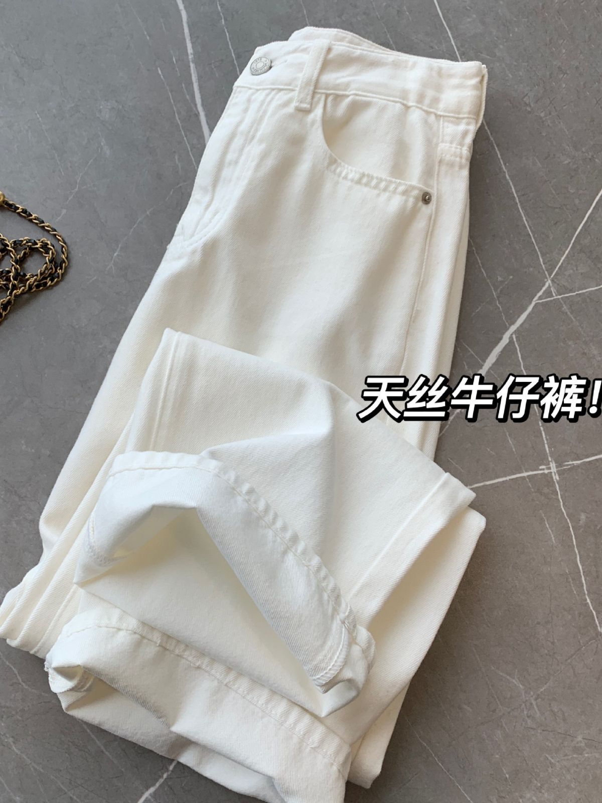 너무 편해요 심플하고 다용도로 활용 가능한 하이웨이스트 슬림핏 화이트 데님 팬츠 여성용 텐셀 롱 팬츠 스트레이트 팬츠 다리가 길어보이게 해요스토어 가기