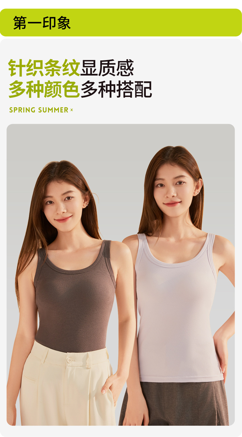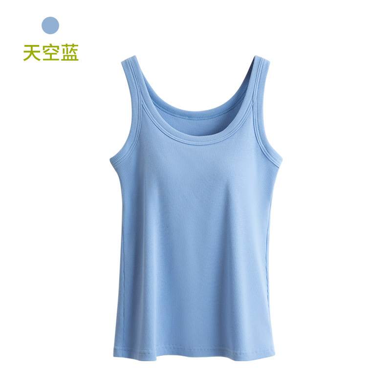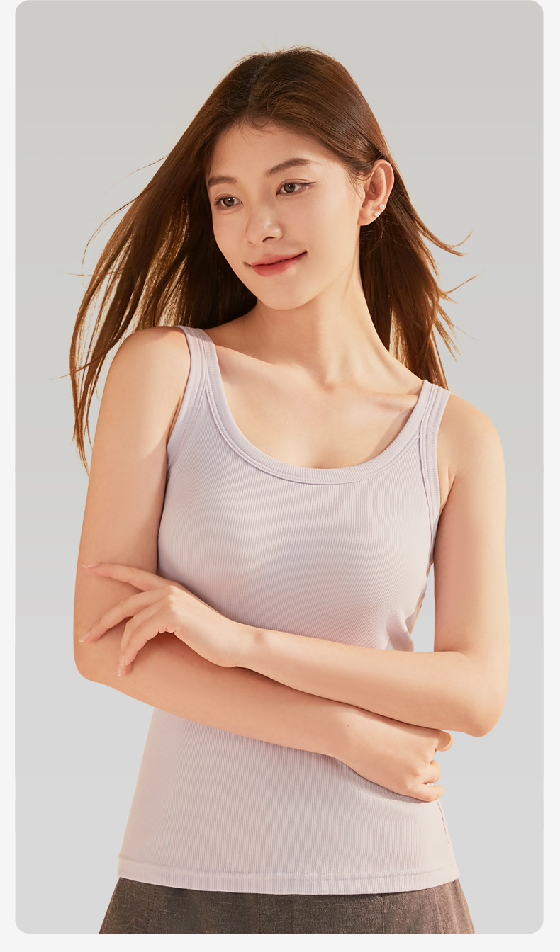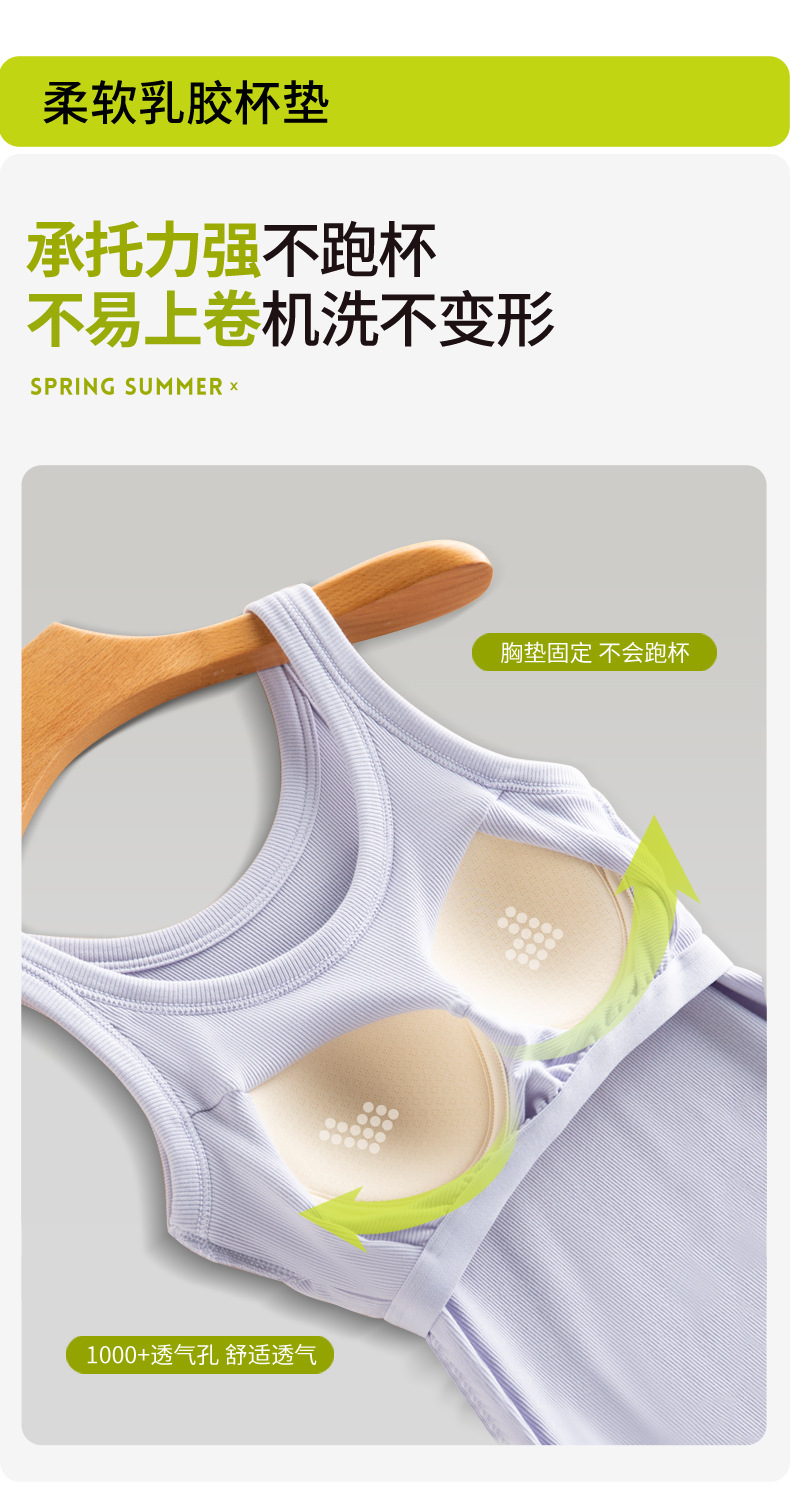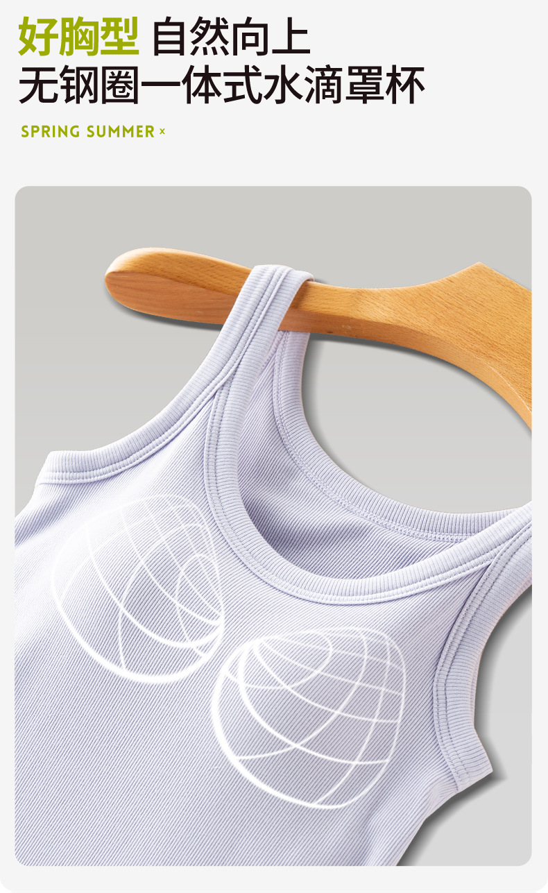 가슴 패드가 있는 여성용 여름 조끼, 올인원 아름다운 등면 스레드 바닥 슬링, 스포츠 브라, 대형 아우터웨어