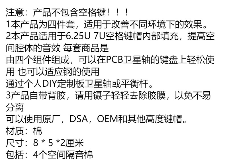 기계식 키보드 위성 축 스페이스 바 캡 방음 면 6.25u 7u 무음 면 무음 면 4 종세트스토어 가기