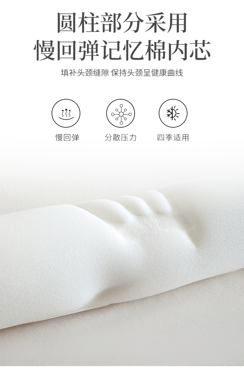 圆柱是记忆棉 枕面是羽丝绒