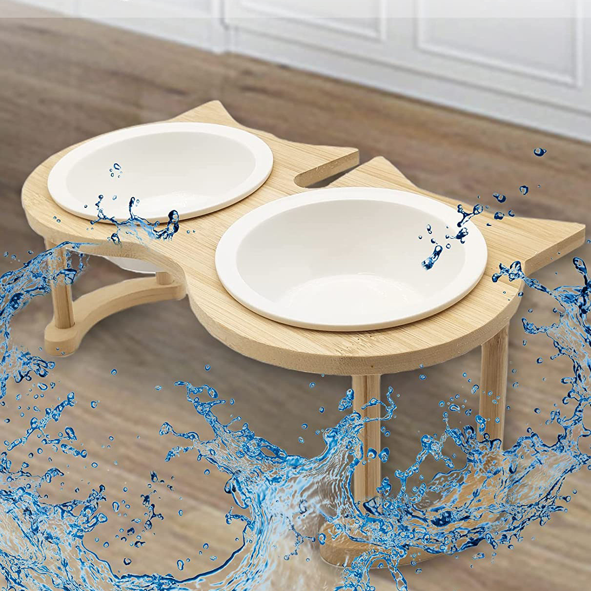 크리 에이 티브 나무 애완 동물 그릇 랙 보호 목 고양이 식수 고양이 그릇 랙 애완 동물 피더 식탁 단단한 나무 그릇 랙스토어 가기