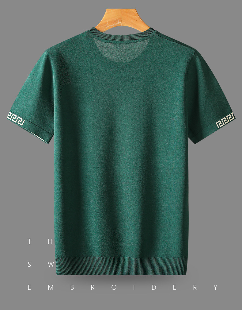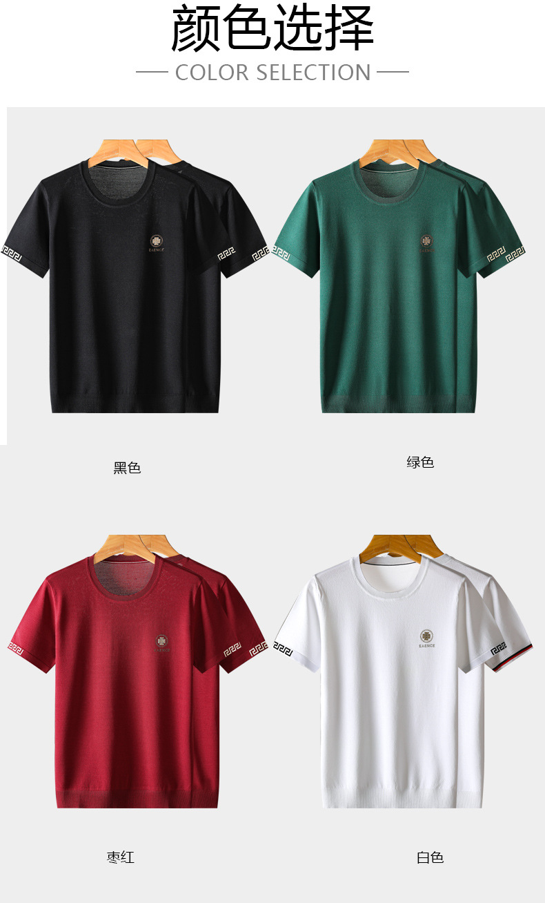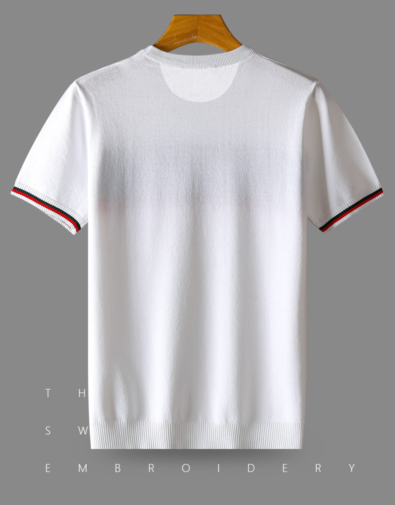 아이스 실크 스웨터 남성용 반팔 캐주얼 쿨 자카드 봄 라운드 넥 프린트 느슨한 반 소매 유행 스웨터