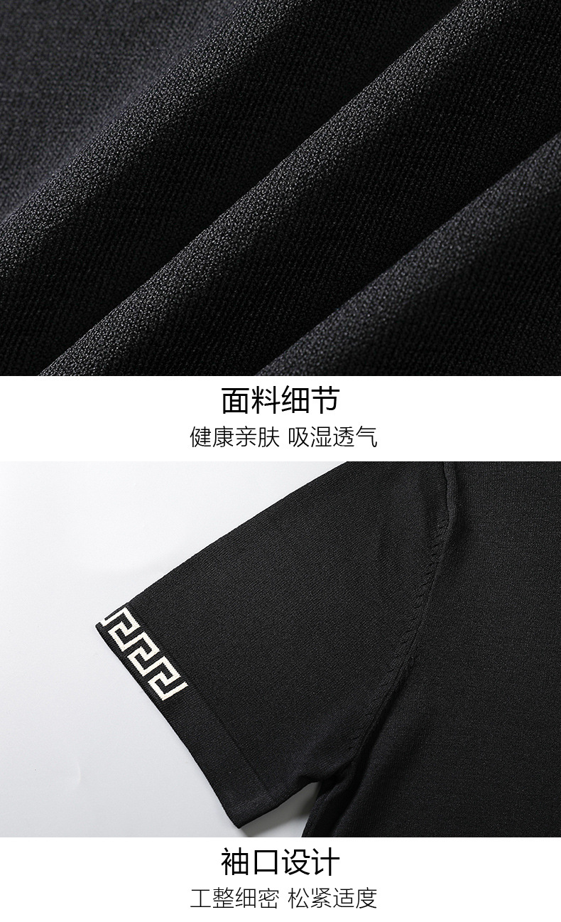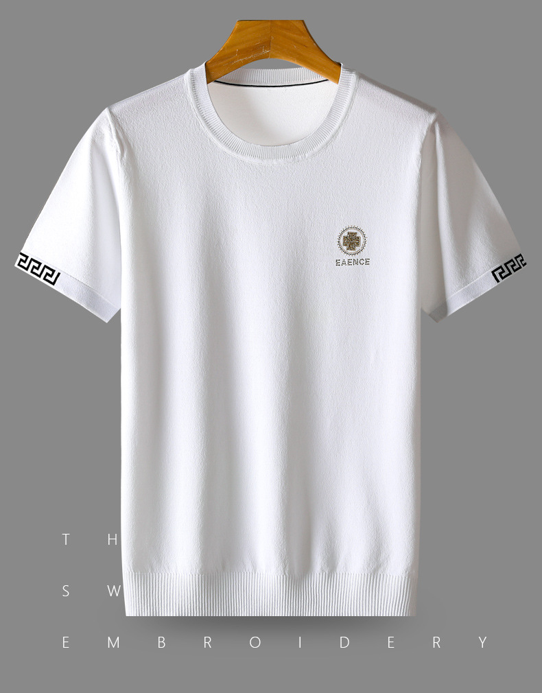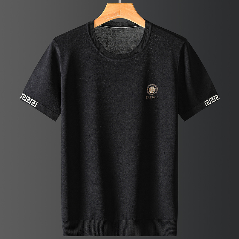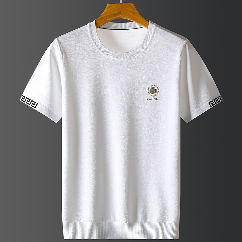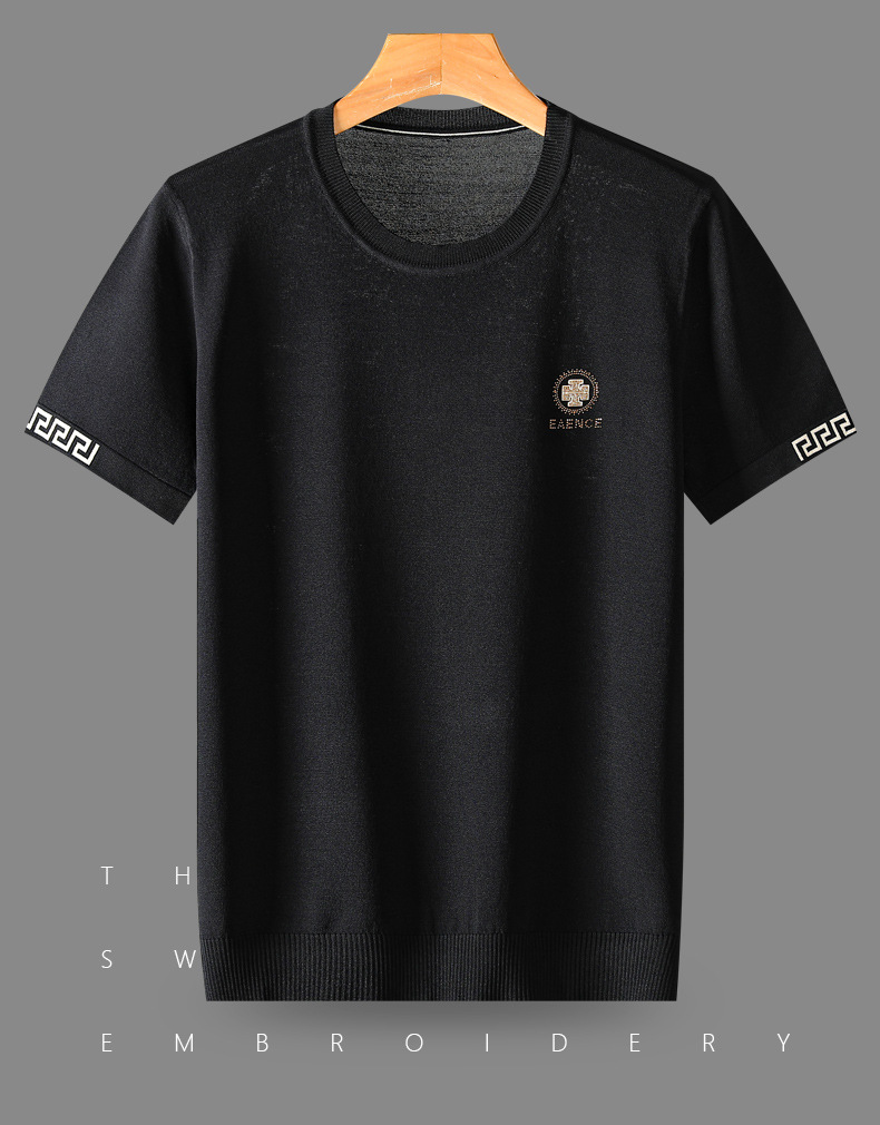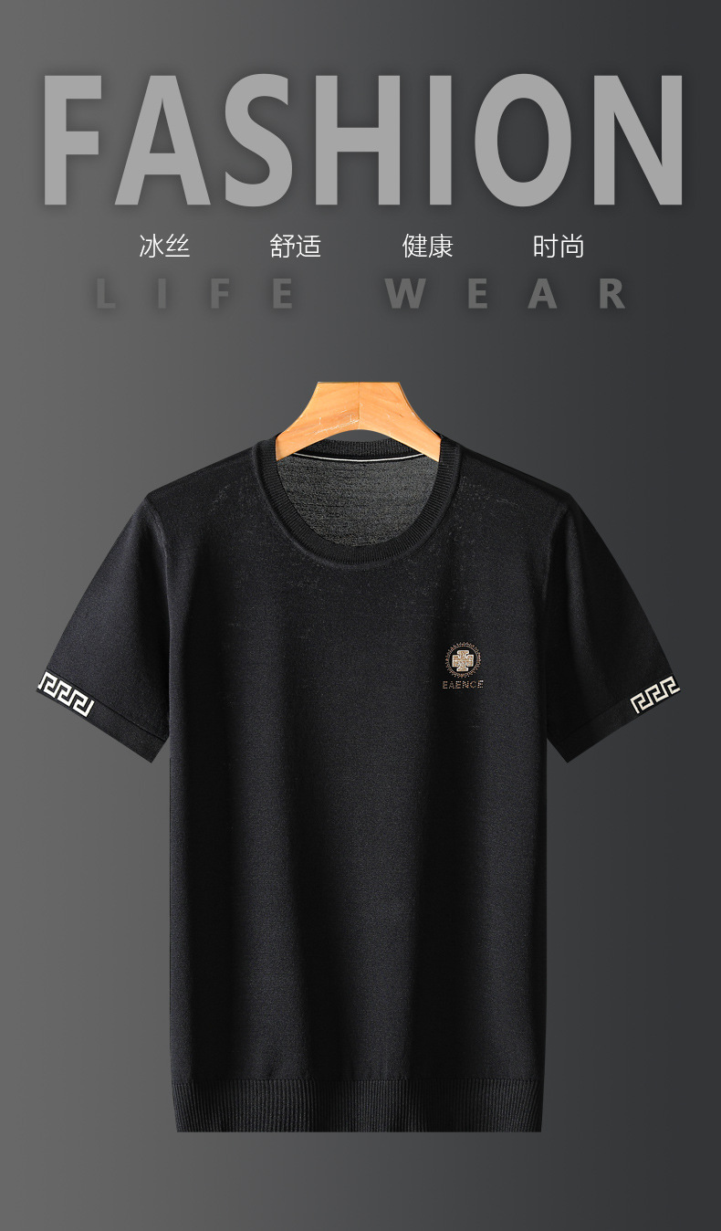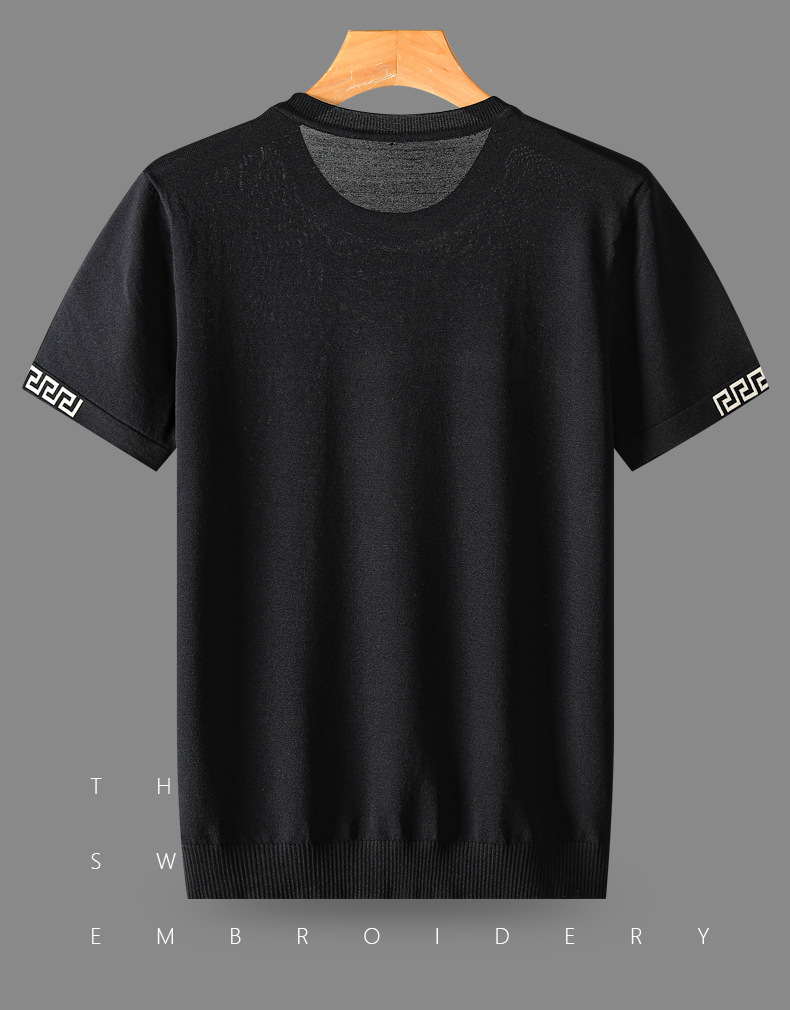 아이스 실크 스웨터 남성용 반팔 캐주얼 쿨 자카드 봄 라운드 넥 프린트 느슨한 반 소매 유행 스웨터스토어 가기