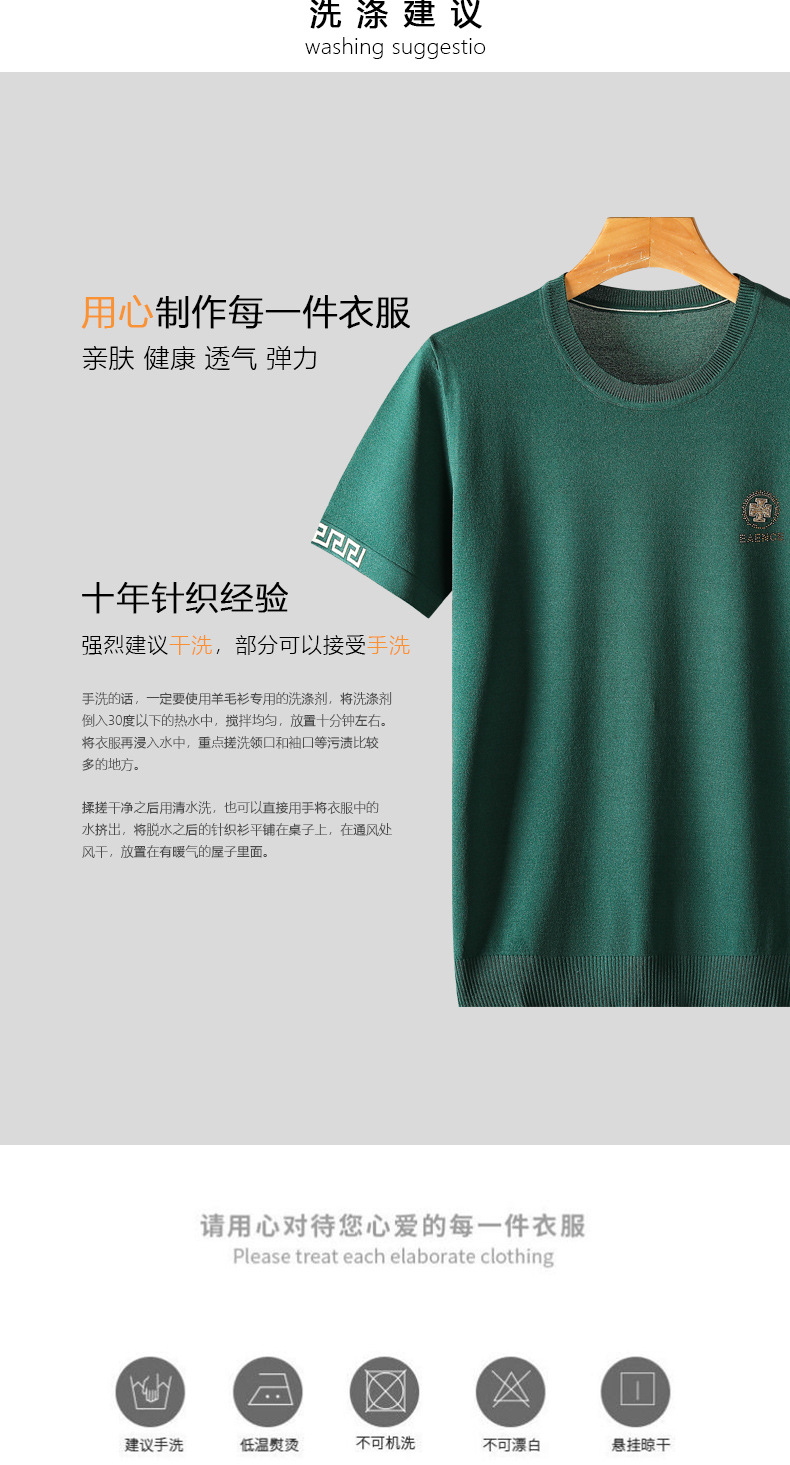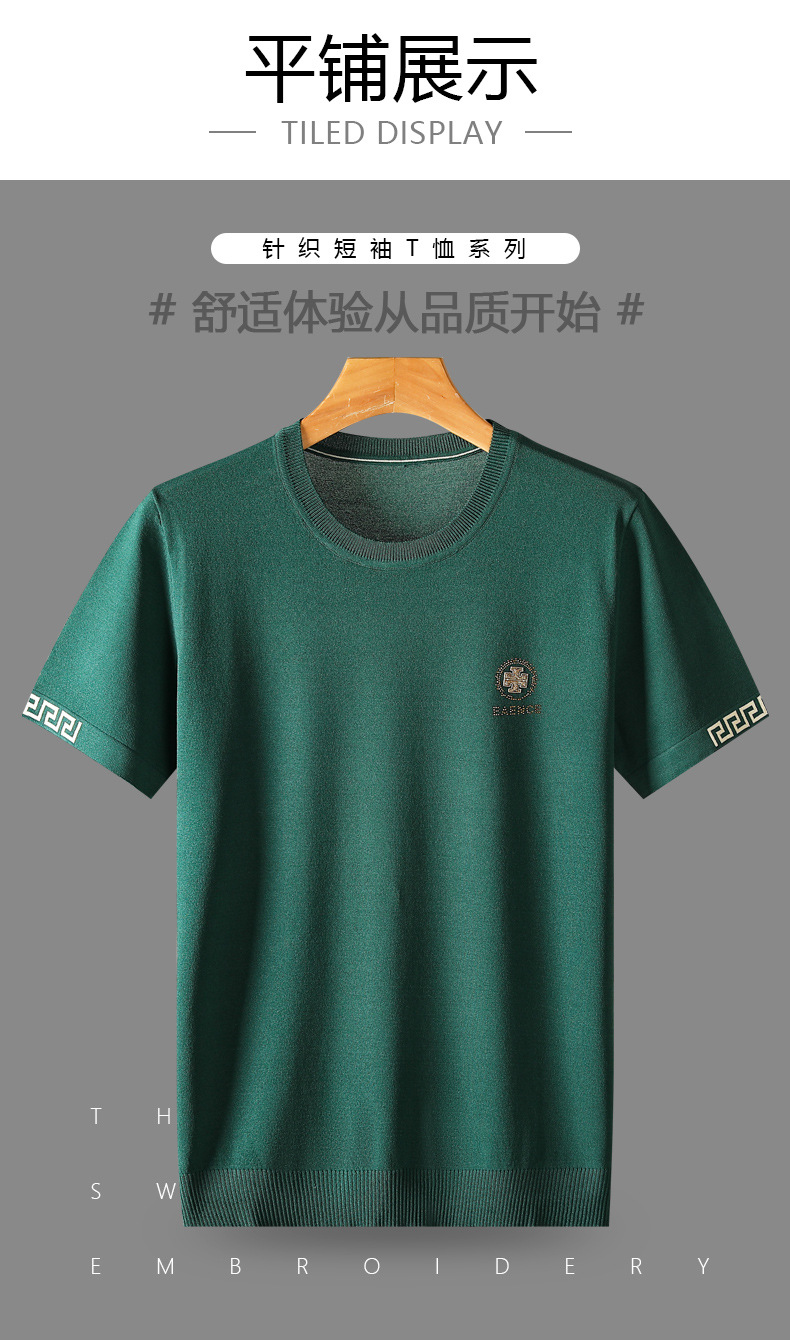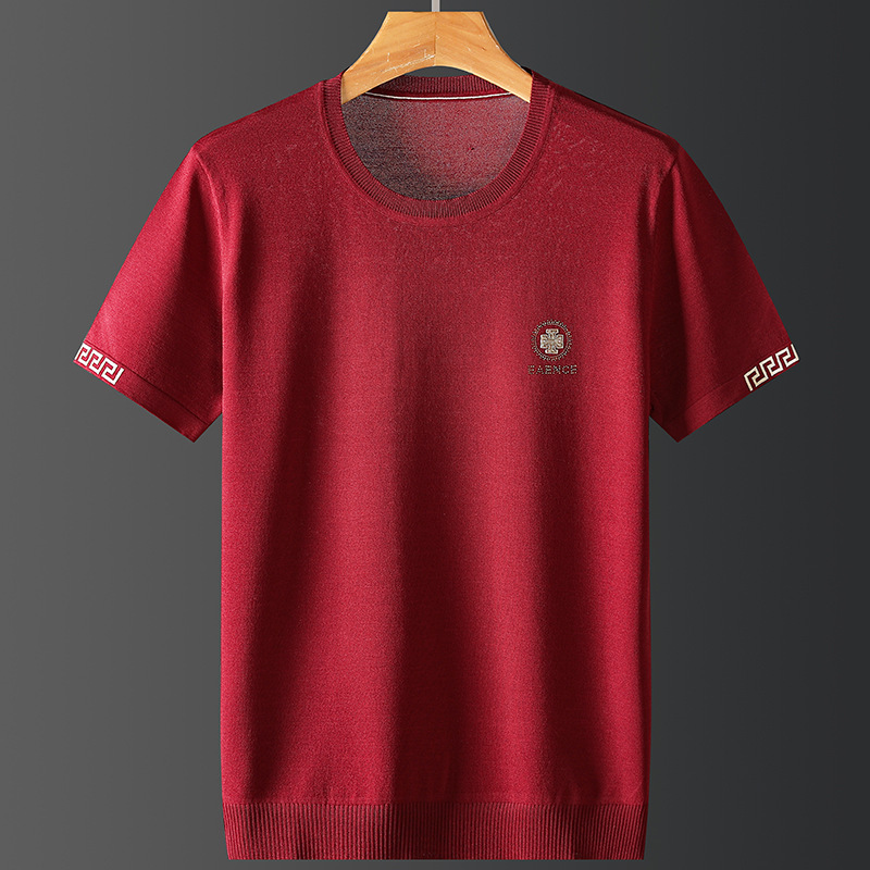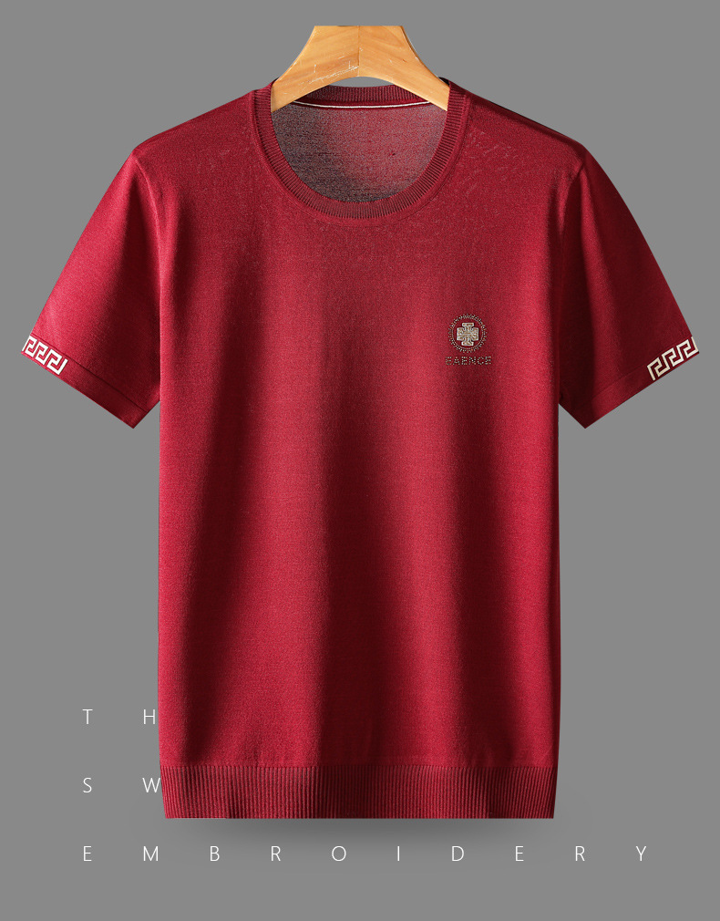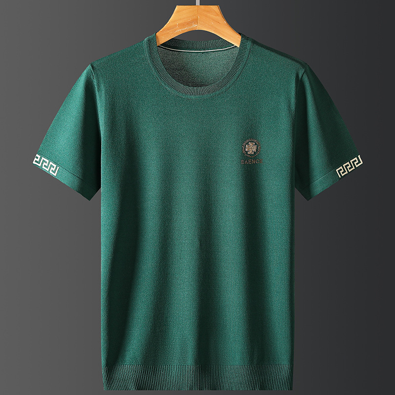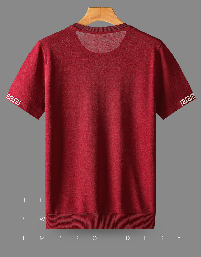 아이스 실크 스웨터 남성용 반팔 캐주얼 쿨 자카드 봄 라운드 넥 프린트 느슨한 반 소매 유행 스웨터스토어 가기