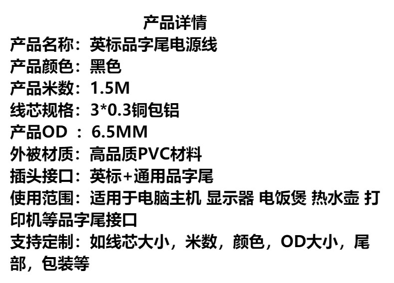 영어 표준 3 플러그 테일 전원 코드 컴퓨터 호스트 모니터 퓨즈 라인이있는 영어 표준 헤드 라인스토어 가기