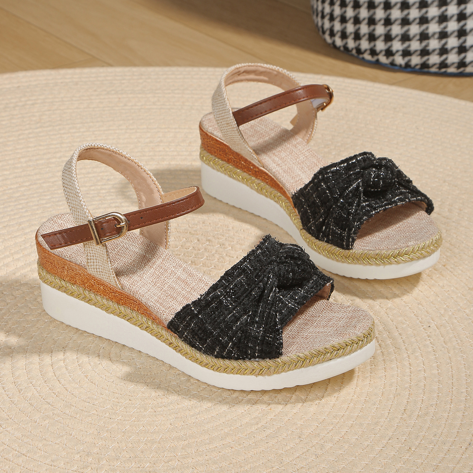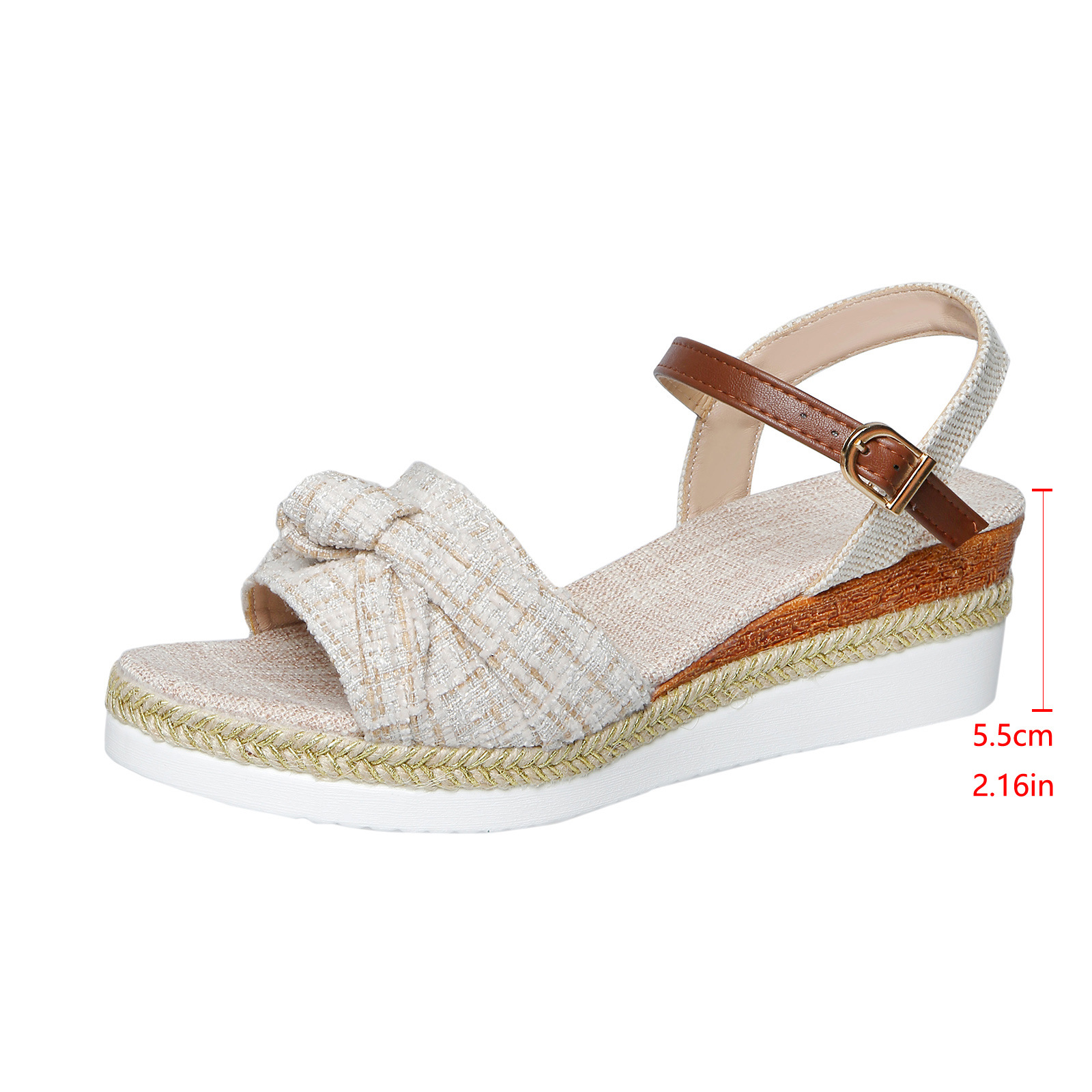 크로스 보더 재고 해외 무역 플러스 사이즈 여성 신발 2023 여름 새로운 한 단어 샌들 버클 웨지 두꺼운 밑창 샌들 여성