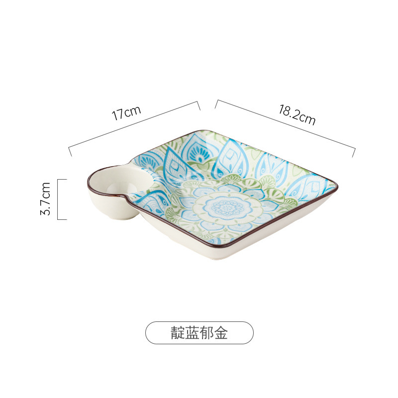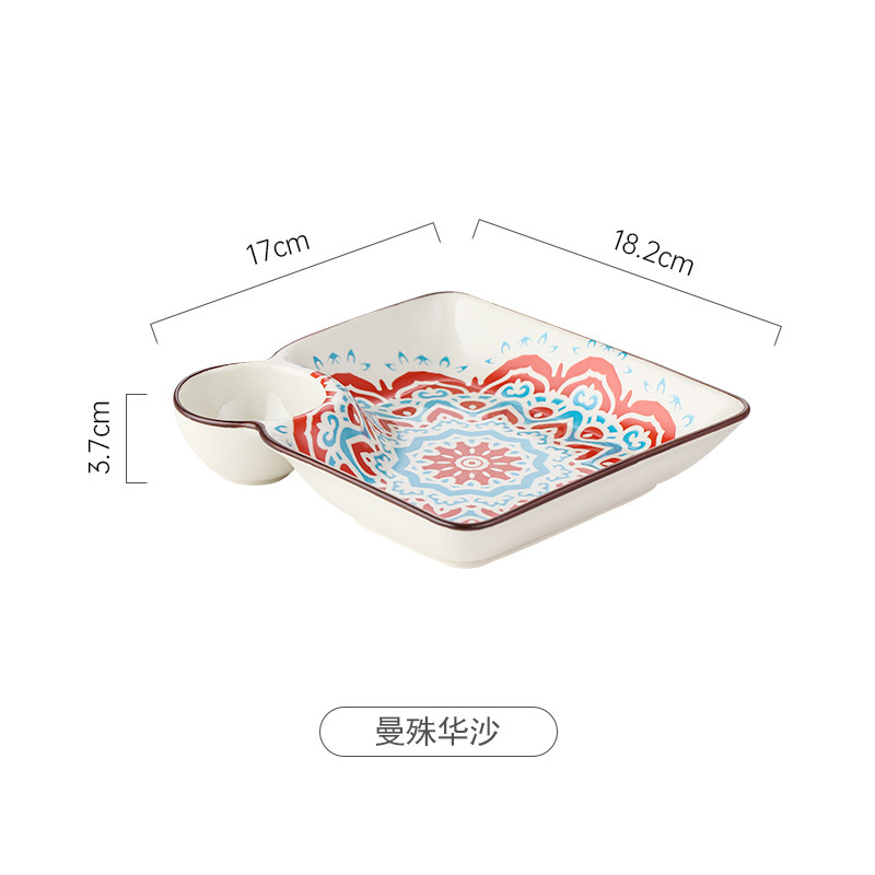 가벼운 럭셔리 보헤미안 모던 스타일 언더 글레이즈 컬러 세라믹 플레이트 소스 스낵 만두 플레이트와 가정용 쿼드 접시